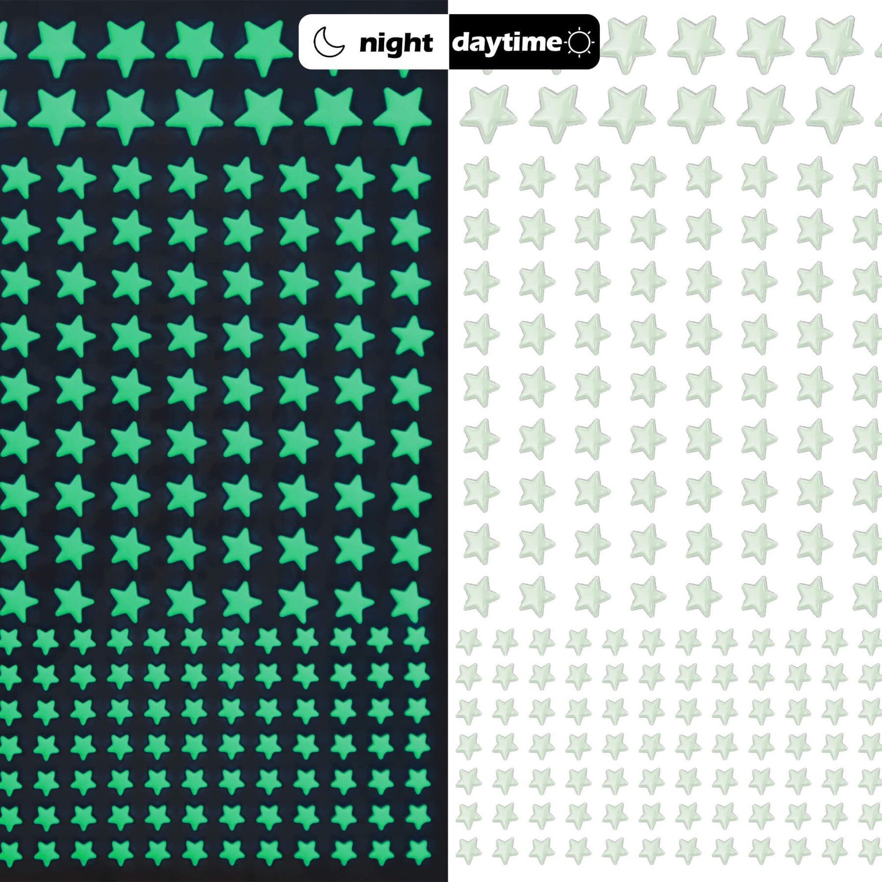 - 633 realistic glow in the dark stars decor stickers!these 3D stars will help you create a fantastic starry sky,with this glow in the dark galaxy set,it adds the look of a real night sky.In the dark the room become to starry shiny bedroom.Create glow in the dark galaxies and constellations on your ceiling, decorate your nursery or make holiday decor