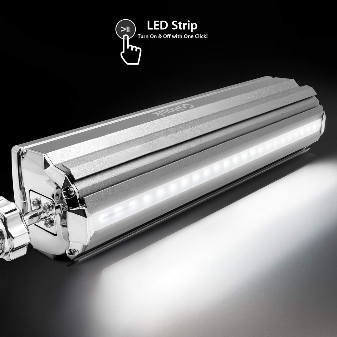 - Innovative Mounting Design by GoHawk: New Ball Stub Design with Mounting Clamp Supports 7/8” to 1 1/4” Handlebar. 360-Degree Swivel-able for More Custom Installation. Included 59” Battery Cable Harness with Ring Terminal Connector Ready.