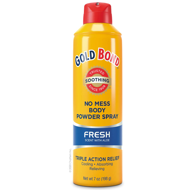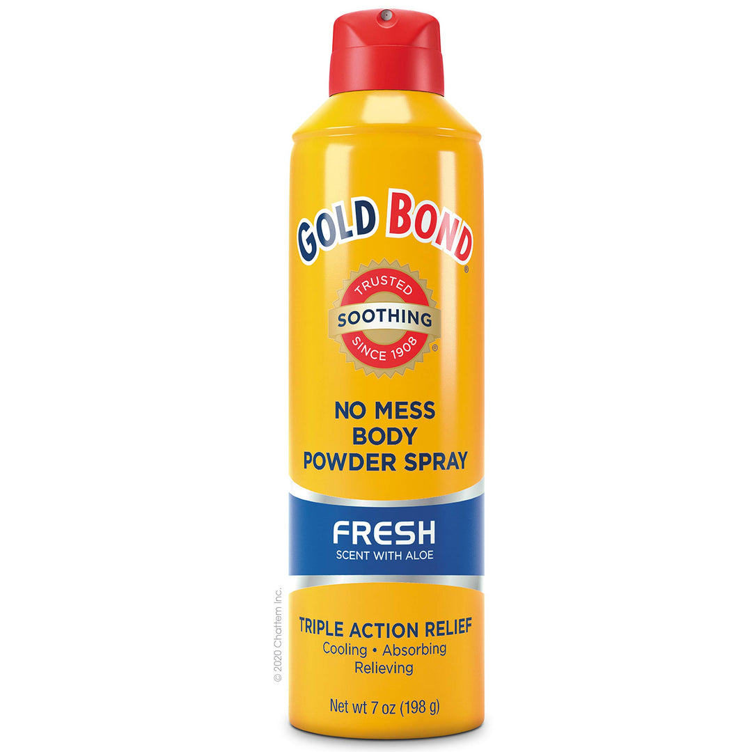 - INCLUDES: One (1) 7-oz. spray can of Gold Bond No Mess Body Powder Spray, Fresh Scent With Aloe