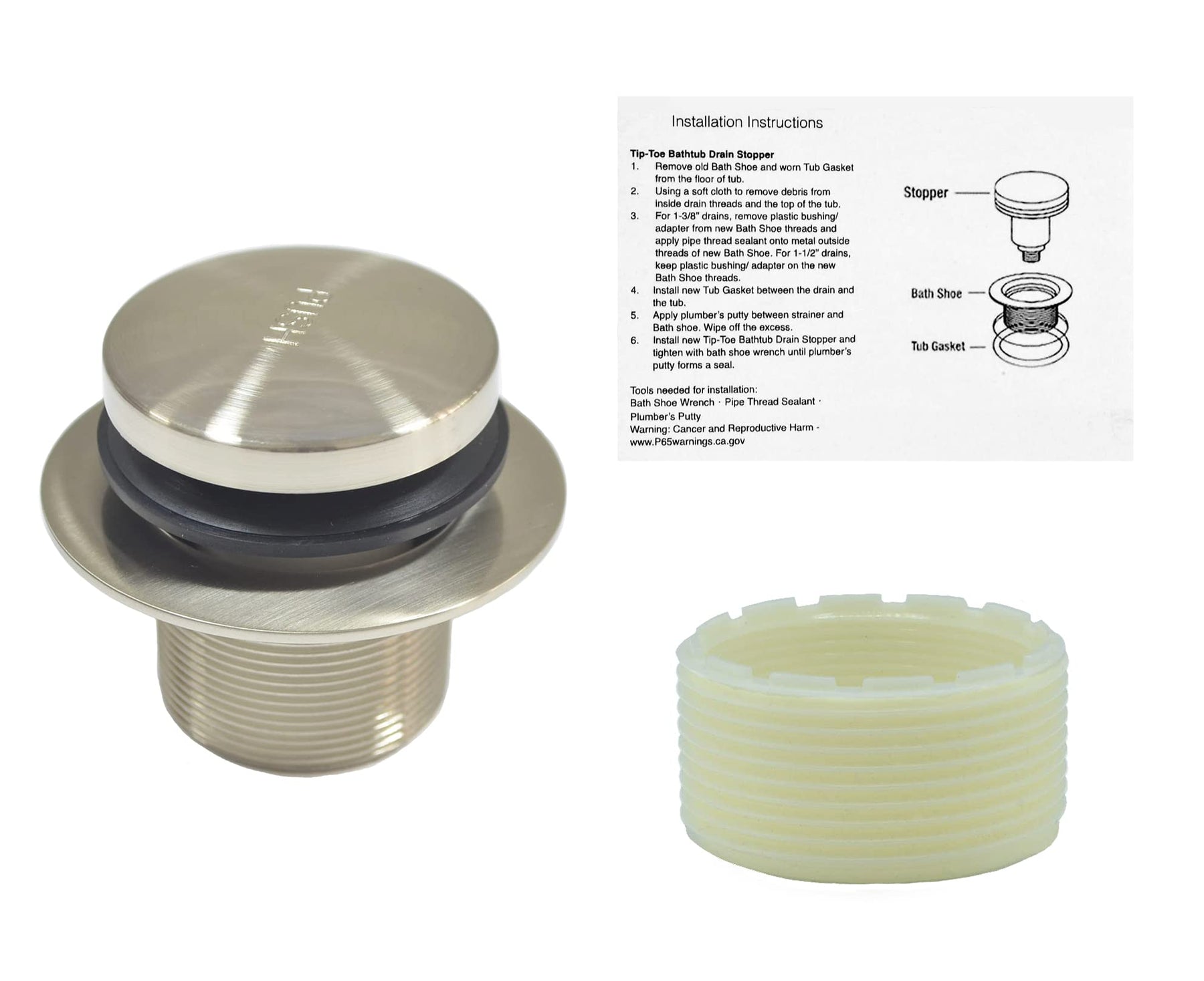 - Original Bathtub Drains – Gold-Hao-The-Bathroom Tip-Toe Bathtub Drain Stopper - Durable Pop Up Tub Drain Stopper, Tub Stopper, Bathtub Drain Pop Up Stopper, Easy Installation - Brushed Nickel by Gold-Hao-the-bathroom