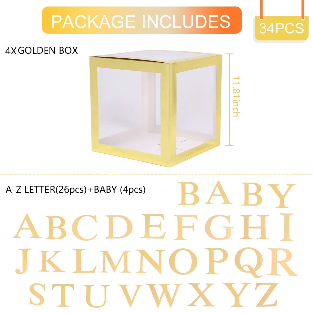 - [The package includes] This set of birthday party boxes includes 4 gold transparent boxes with 30 letters. To decorate your birthday party with these boxes, make it more beautiful, impress your guests, and most importantly let your baby and families favors love the party.