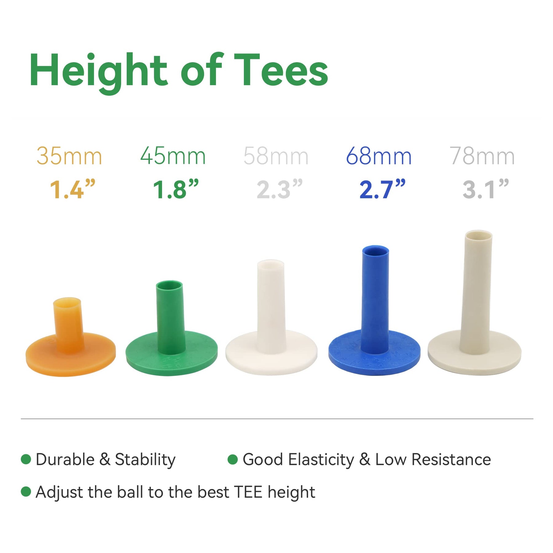 - 5. Height of tees: 3.1''/2.7''/2.3''/1.8''/1.4''