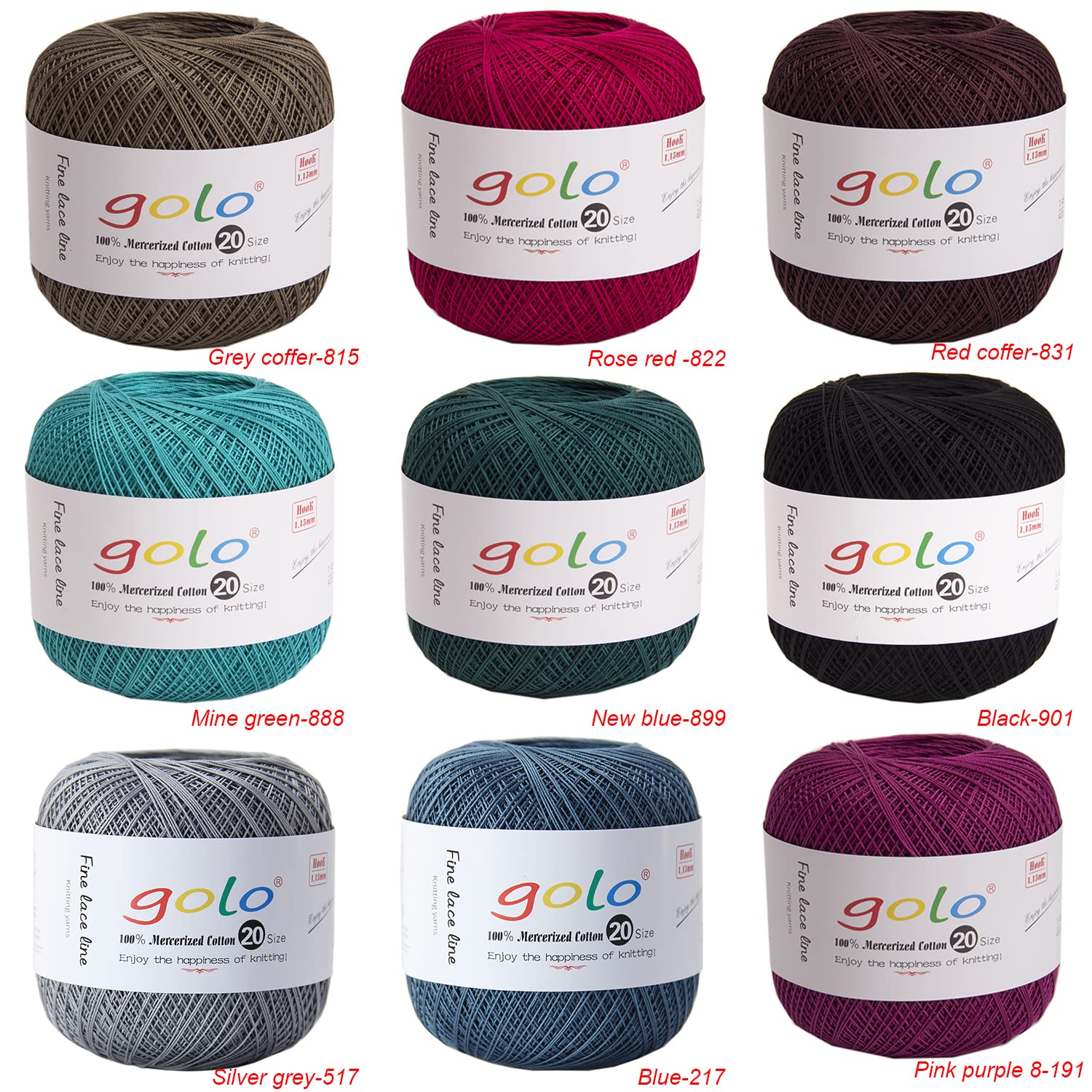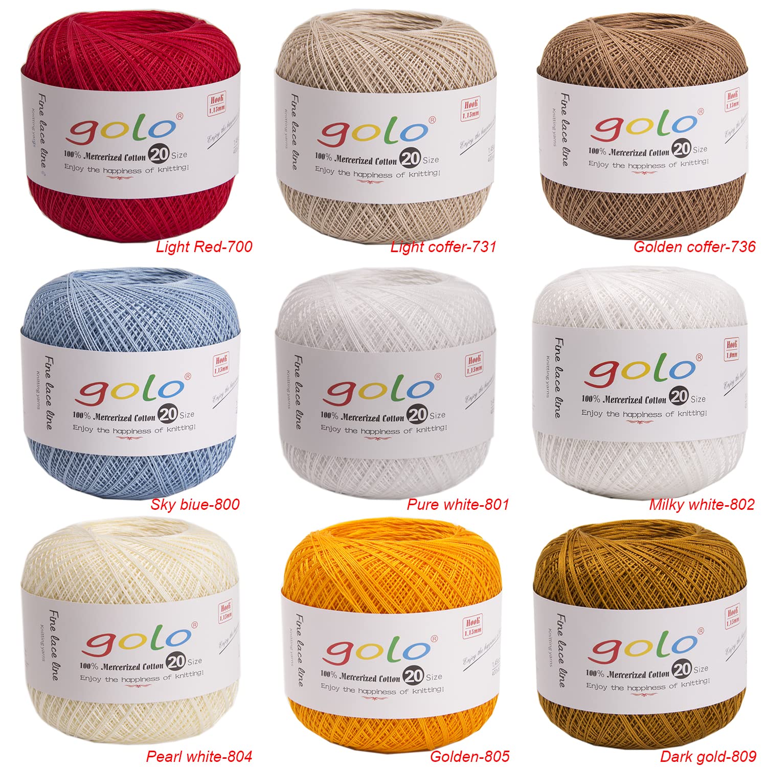 - The golo crochet yarn is made of 100% long-staple cotton. It has a bright color and long-lasting quality. It is environmentally friendly and fashionable. It is very suitable for making beautiful clothes, crochet flowers, dolls and other handicrafts.