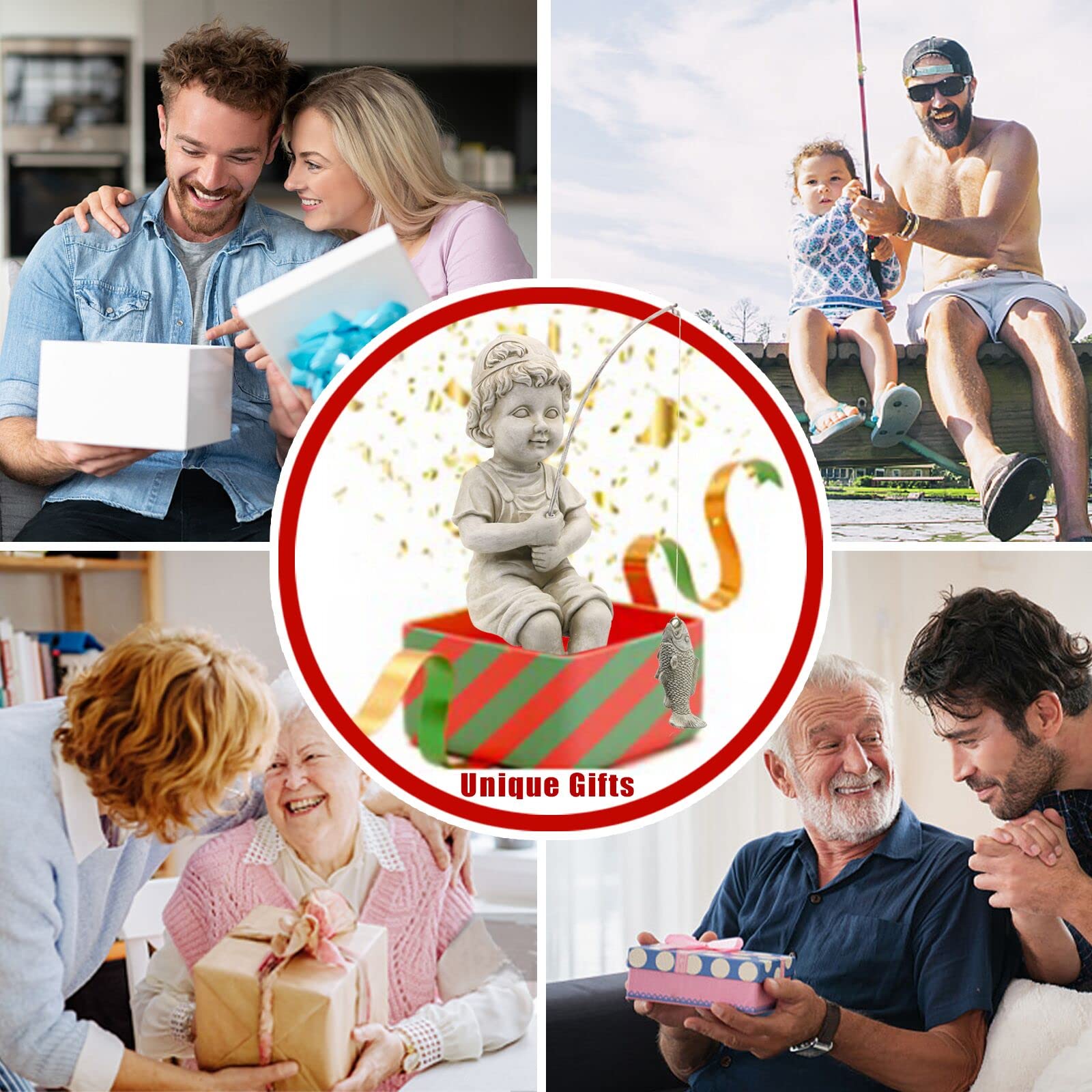 - Unique Design - Our Fisherboy has caught a wee little fish.Ready to pose on your pond edge. You will enjoy many laughs with friends, and family with his catch of the day on his fishing lure.