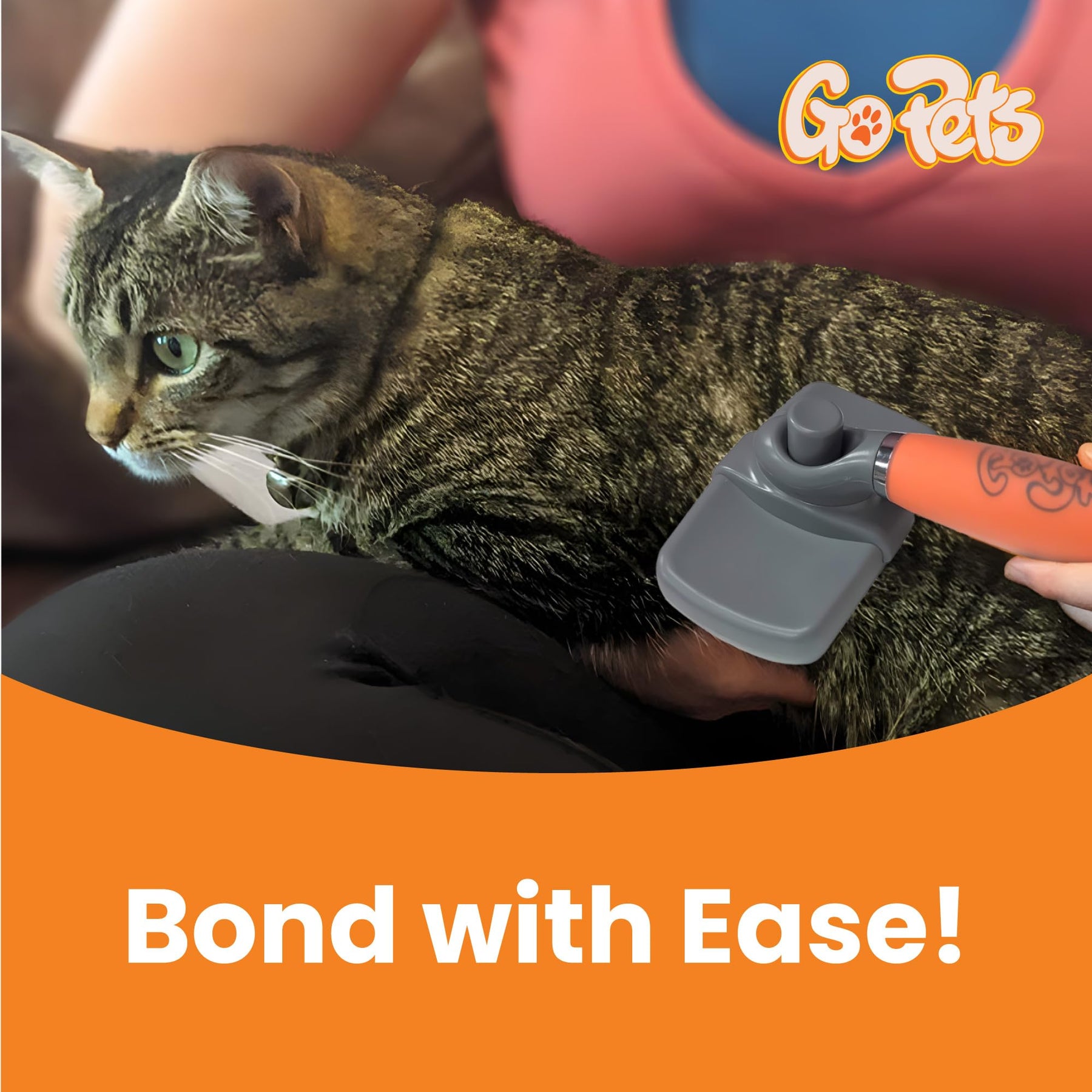 - COMFORTABLE, USER-FRIENDLY DESIGN: Groom with ease using the GoPets slicker brush for dogs and cats. The ergonomic non-slip silicone gel handle provides a firm, comfortable grip, ensuring maximum control and reducing strain on your wrist and hand, even during extended grooming sessions. Ideal for pets with thick fur, making brushing enjoyable for both you and your furry friend.