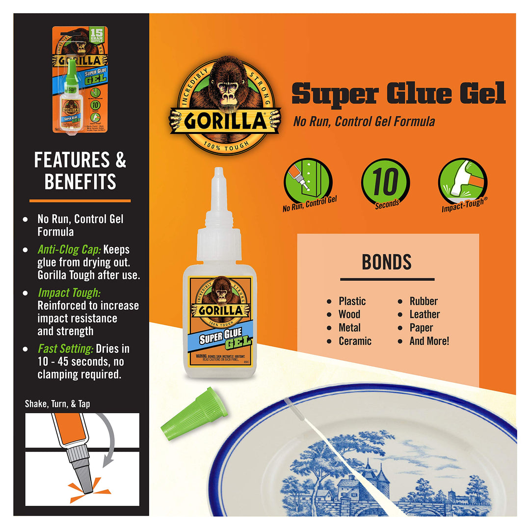 - Original Cyanoacrylate Adhesives – Super Glue Gel, 15 Gram, Clear, (Pack of 2) by Gorilla