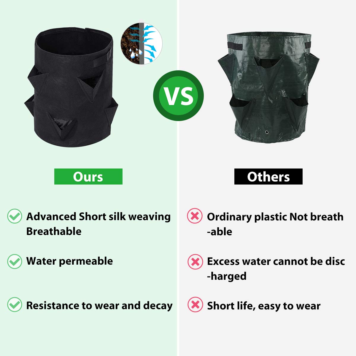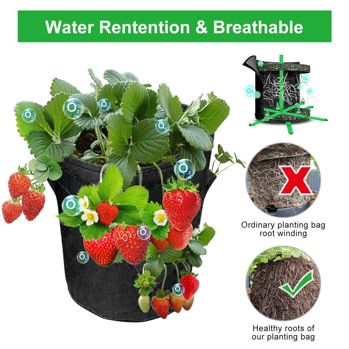 - BREATHABLE FABRIC MATERIAL-The strawberry planting bag is made of high-quality non-woven fabric. It has a good drainage function and avoids overwatering, which is very important for this type of fruit. In addition, it provides enough growth space for plants and helps prevent soil-borne diseases and root diseases.
