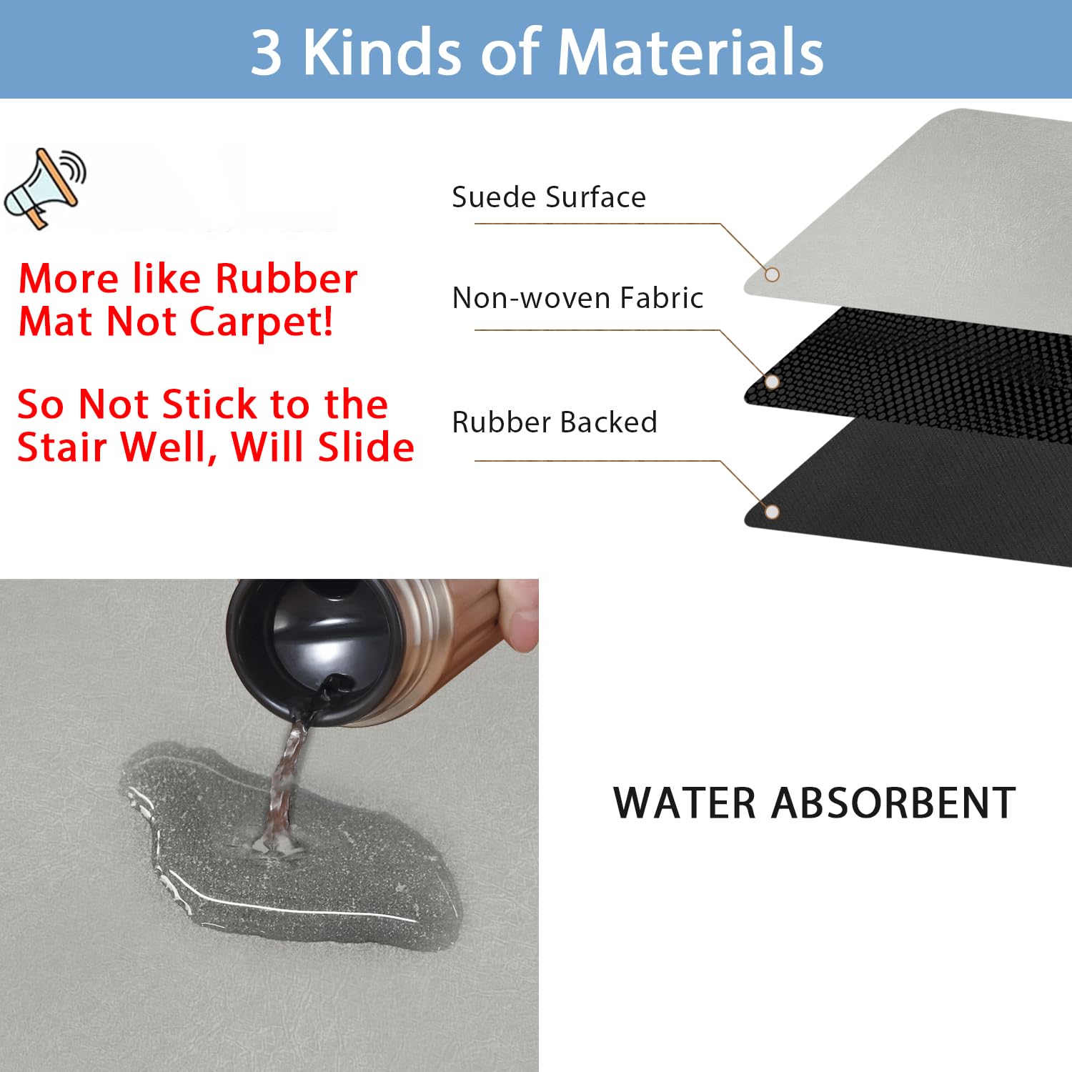 - No Adhesive: Anti-slip stair treads can obviously secure your safety when you go up and down the stairs. In addition, they won't destroy your stairs at all, because the anti moving bottom we created is NOT glue or permanent adhesive, and there won't be any residue when you remove them from the steps. Please be know that our rubber stair mats are not suitable for outdoor use.