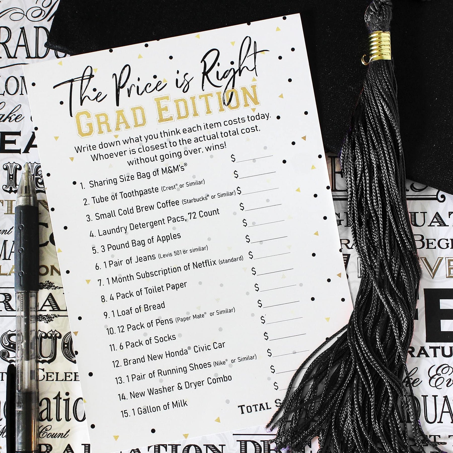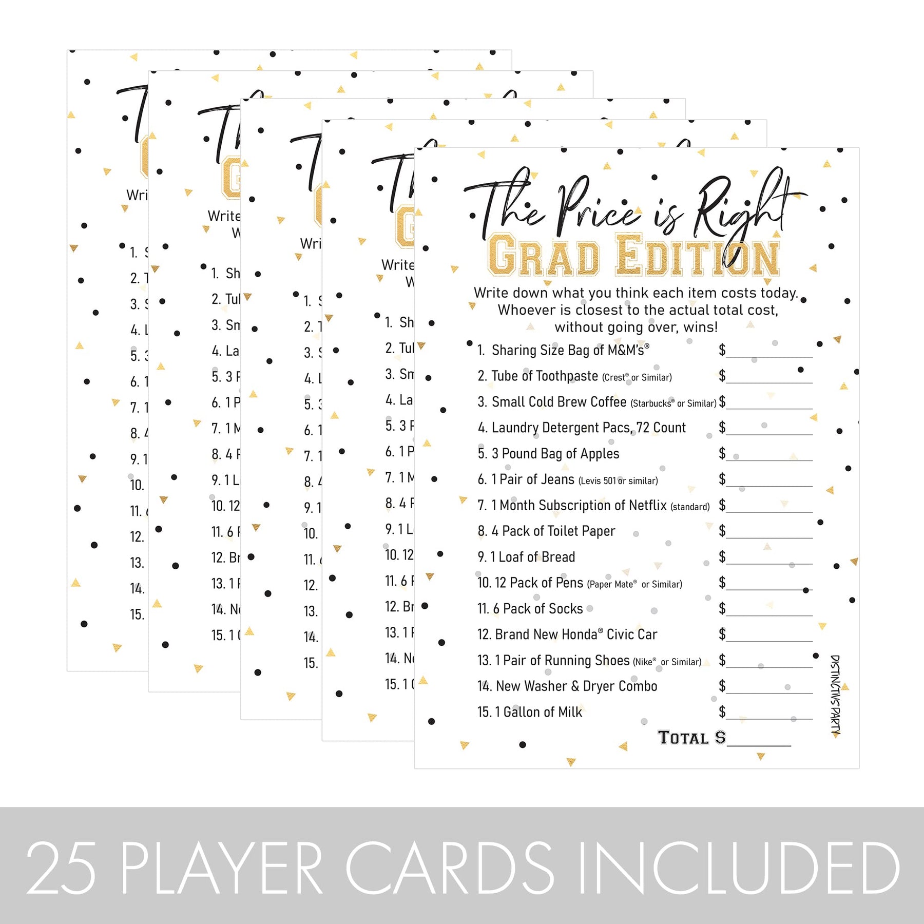 - 25 COUNT: Graduation Price is Right game cards to add to your black and gold graduation party games.