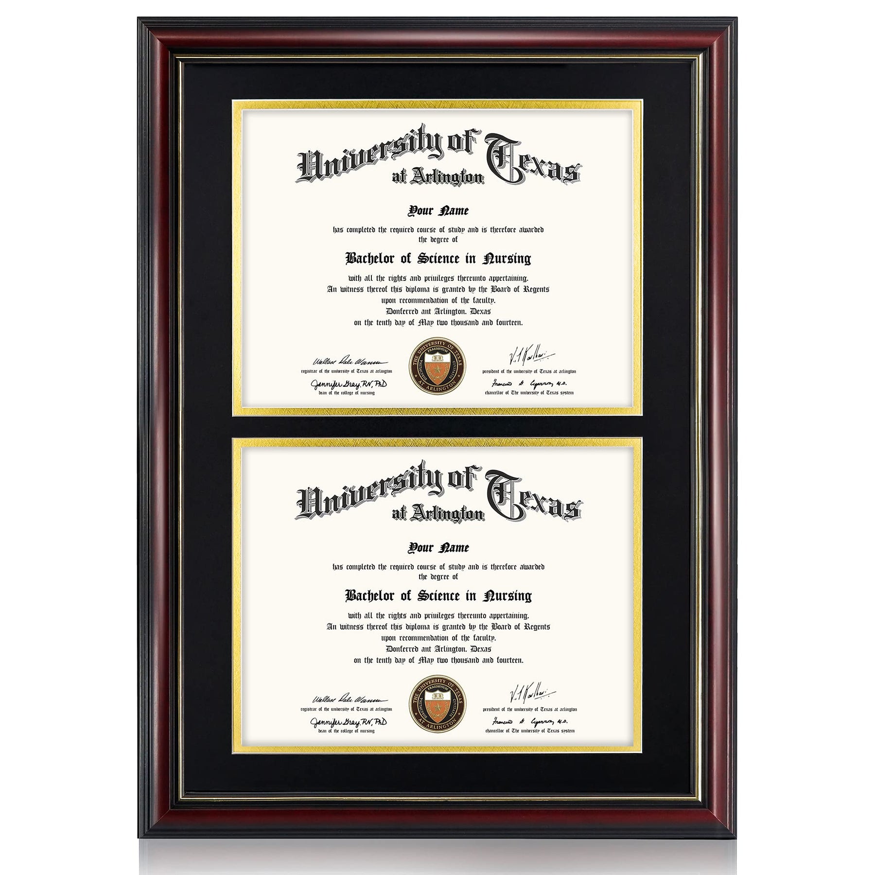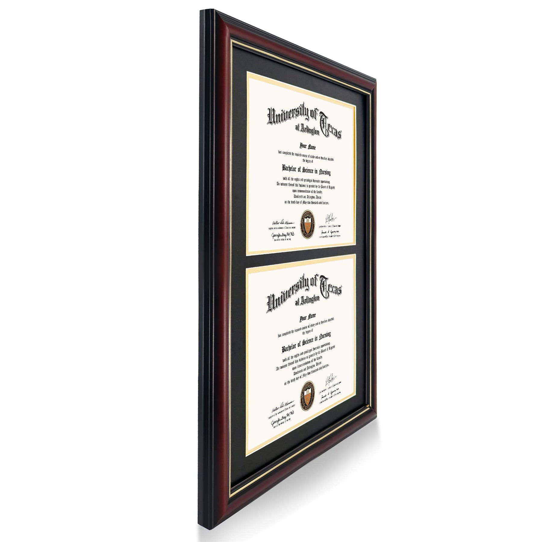 - Original Document Frames – Double 8.5x11 Diploma Frame,Solid Wood & UV Protection Acrylic,Cherry Finish with Gold Trim,Black & Gold Mat by GraduationMall
