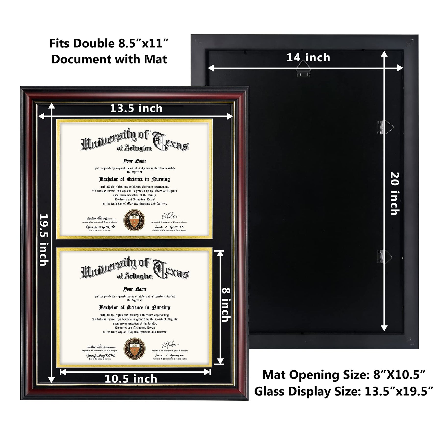 - SIZE: Made to display double 8.5 x 11 document. Mat opening Size 8 x 10.5; 1.25 wide and 1 thick molding. Overall size is 13.5 x 19.5 x 1.