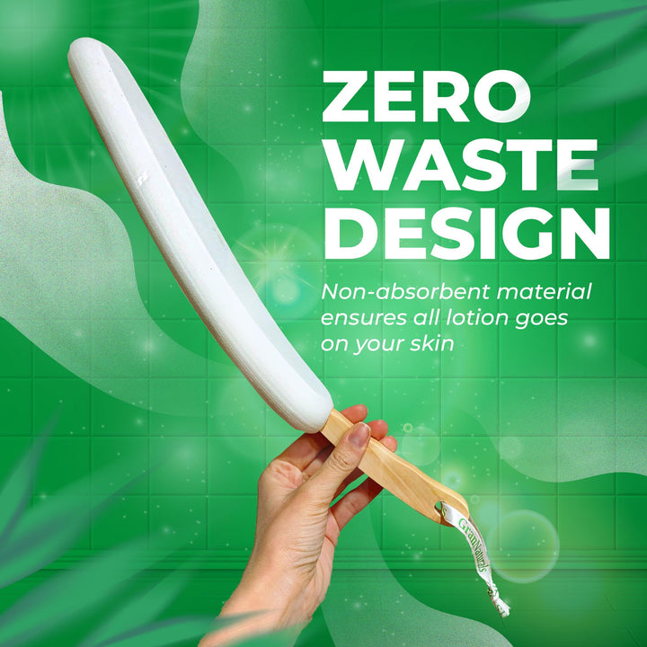 - ERGONOMIC WOOD HANDLE: Unlike other back lotion applicators, this tool features a real wood handle. Stronger & sturdier than plastic applicators, our wand offers long lasting quality. No more awkward bending to reach your back
