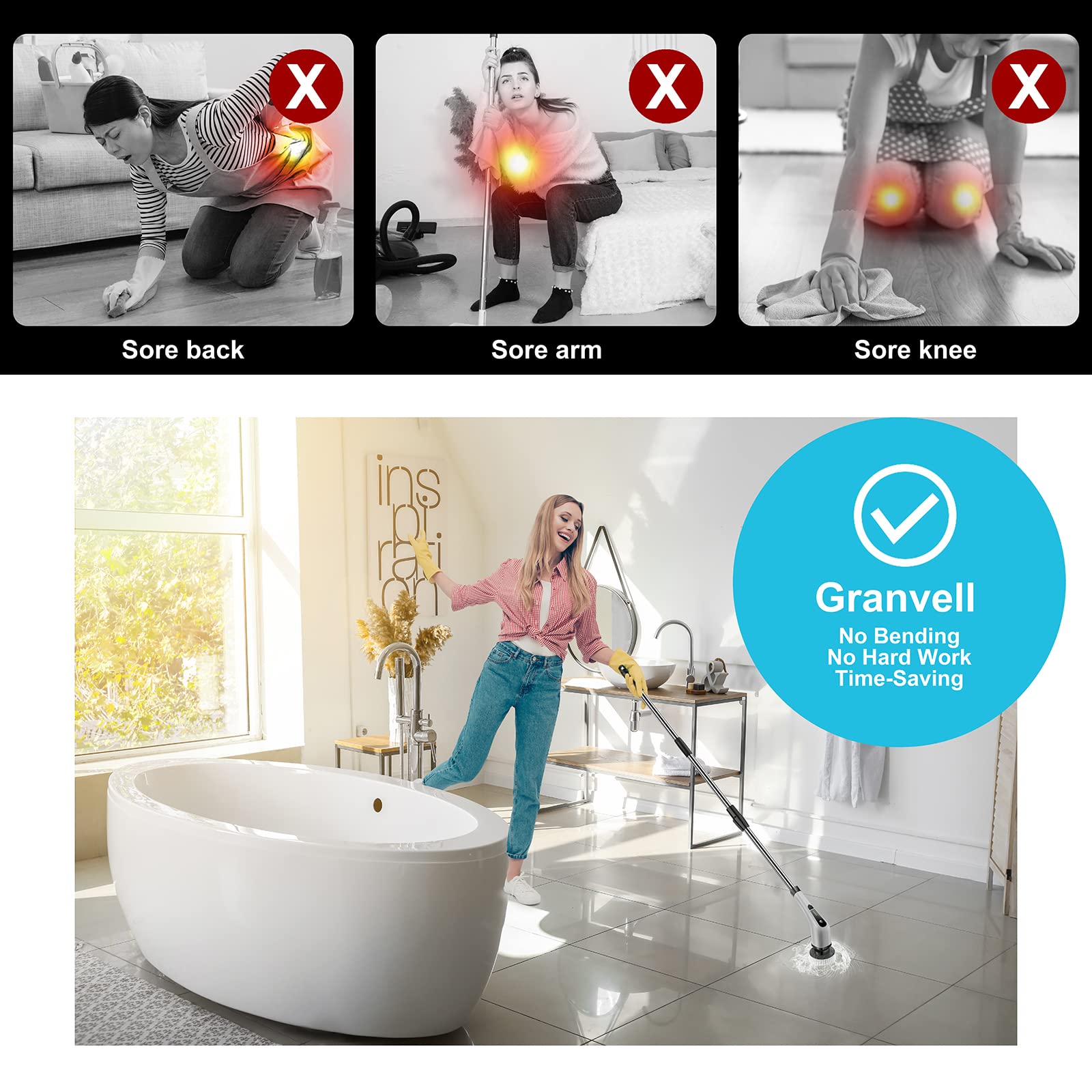 - Original Brushes – Granvell Electric Spin Scrubber, Power Shower Scrubber with 7 Brush Heads, Portable Household Tools & Cordless Cleaning Machine, Bath Tub Scrub with Long Handle for Bathroom Floor Tile(Grey) by GRANVELL