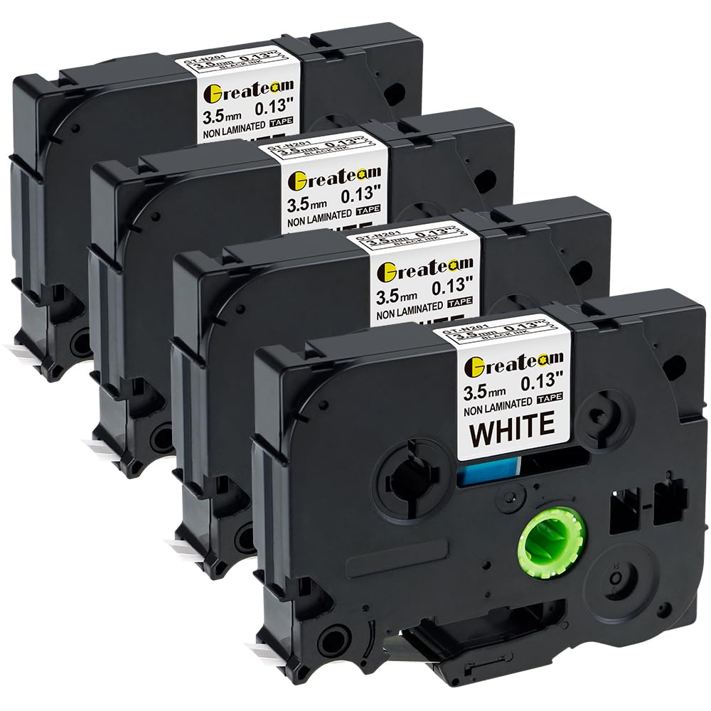 - Original Labeling Tapes – 3.5mm Label Tape Replacement for Brother TZe Tape TZe-N201 Black on White 3.5mm P-Touch Label Maker Tape Compatible with Brother P-Touch PTD210 PTD220 PTH110, 4-Pack by Greateam