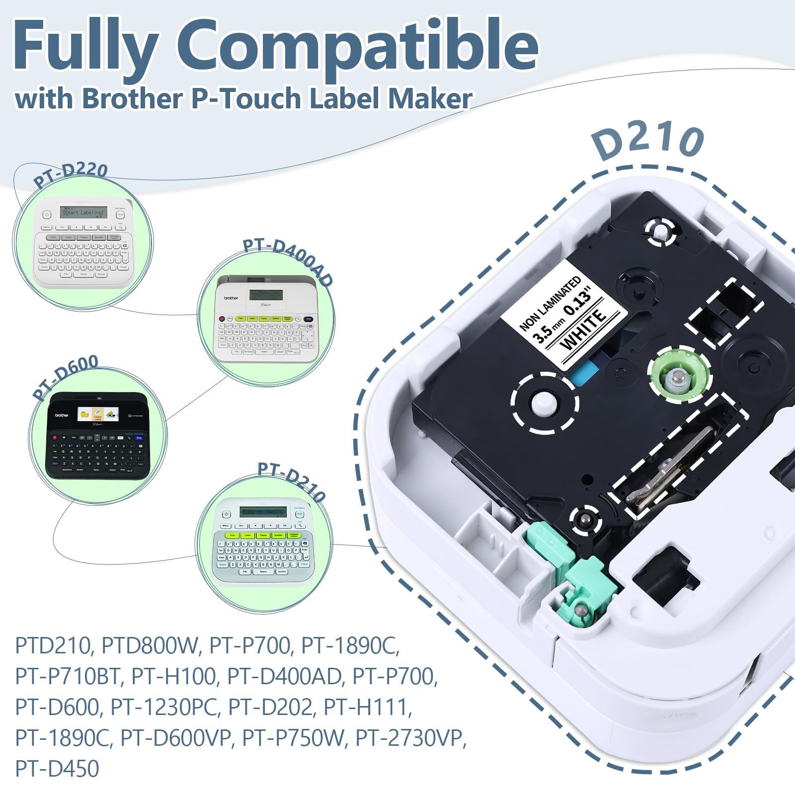 - Compatible 3.5mm TZe Label Maker Tape Compatible with Brother P-Touch Label Maker : PT-D210, PT-H100, PT-H110,PT-P700, PT-P710BT, PT-D400AD, PT-P700, PT-D600, PT-1230PC, PT-D202,PT-H111, PT-1890C, PT-D600VP, PT-P750W, PT-2730VP, PT-D450, PT-D400, PT-D200, PT-P710BT, PT-P910BT , PT-P300BT, PT-1880C, PT-1880, PT-H500LI, PT-2730, PT-1890W, PT-2430PC, PT-9700PC, PT-2300, PT-1280SR, PT-2030AD, PT-1090, PT-1290, PT-1880W, PT-9600 etc.