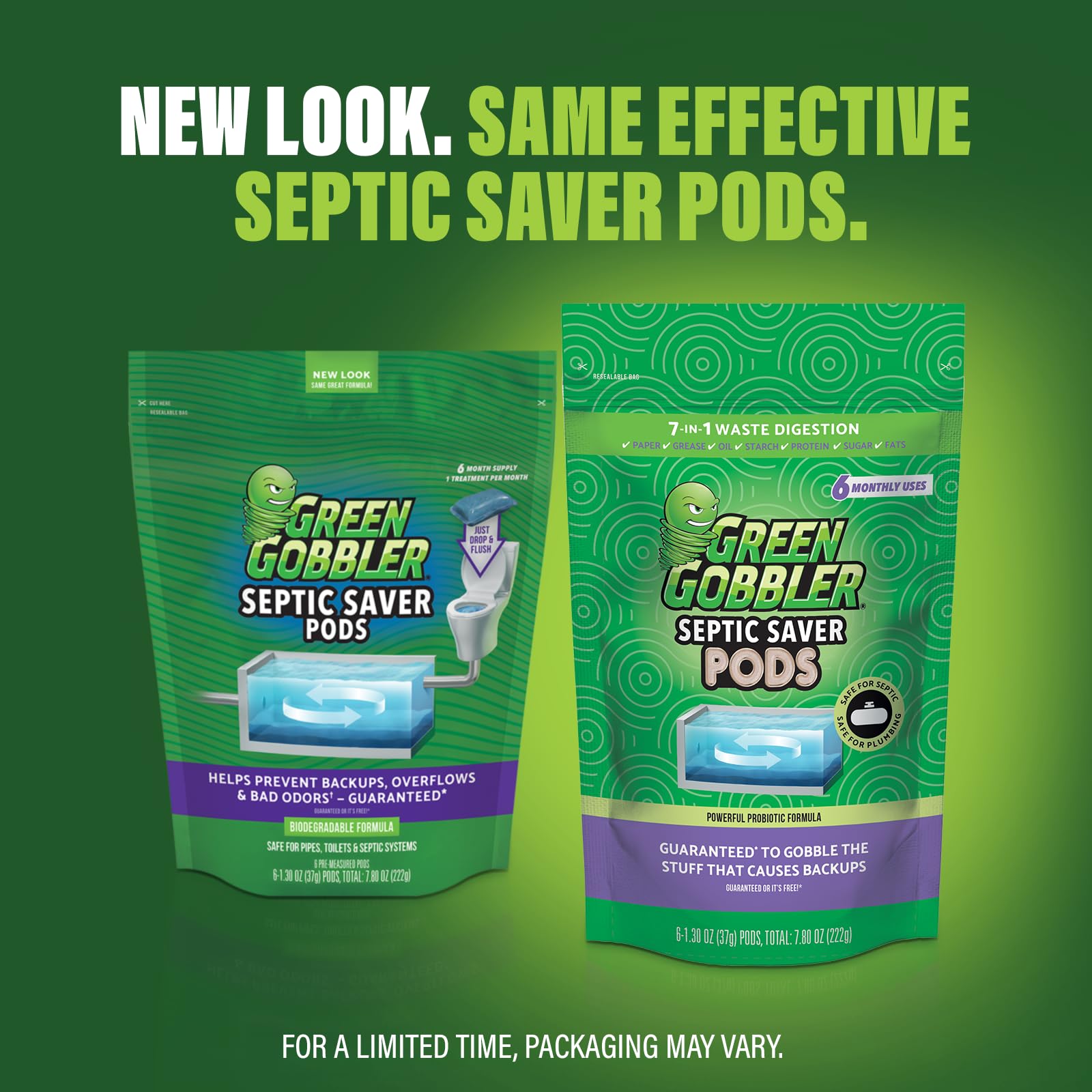 - Original Drain Openers – SEPTIC SAVER Bacteria Enzyme Pacs - 6 Month Septic Tank Supply - 6 Pre-Measured Packets(2.13 oz each) by Green Gobbler
