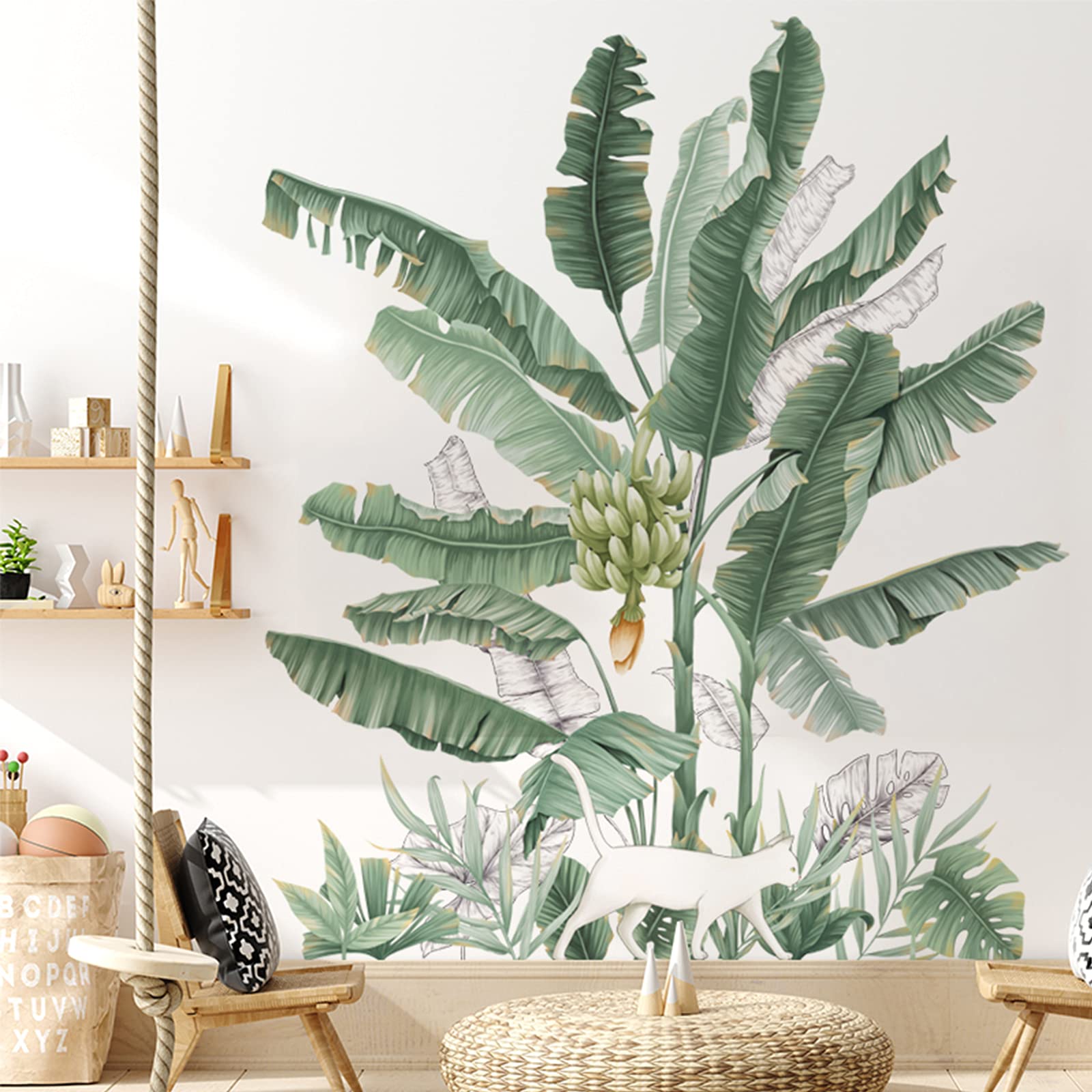 - Original Wall Stickers – Green Plants Wall Stickers, Removable Waterproof Fresh Leaves Stick Wall Decals, Vibrant Tropical Leaf Peel and Stick Art Murals for Bedroom Living Room Office Home Decorations (D) by NOA