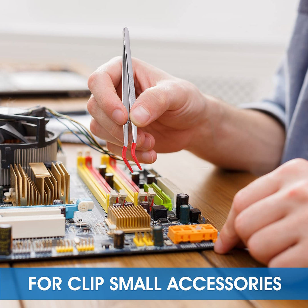 - SIMPLE OPERATE: you can use stainless steel tweezers to place or handle little items from different angles, and the tweezers can help you handle things stably, not easy to slip off, making it easier and comfortable for you to clip small objects