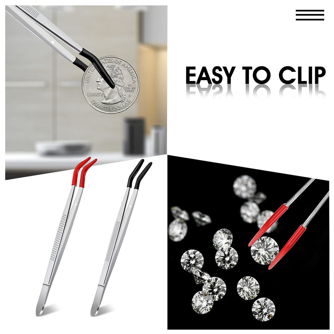- Original Industrial Tweezers – 2 Pieces Rubber Tips Tweezers, Curved Tweezers Stainless Steel Tweezers with Rubber Tips Black Flat Tip Long Tweezer Red Bent Tip Tweezers for Crafts Repairing Jewelry Craft Tool by Grevosea