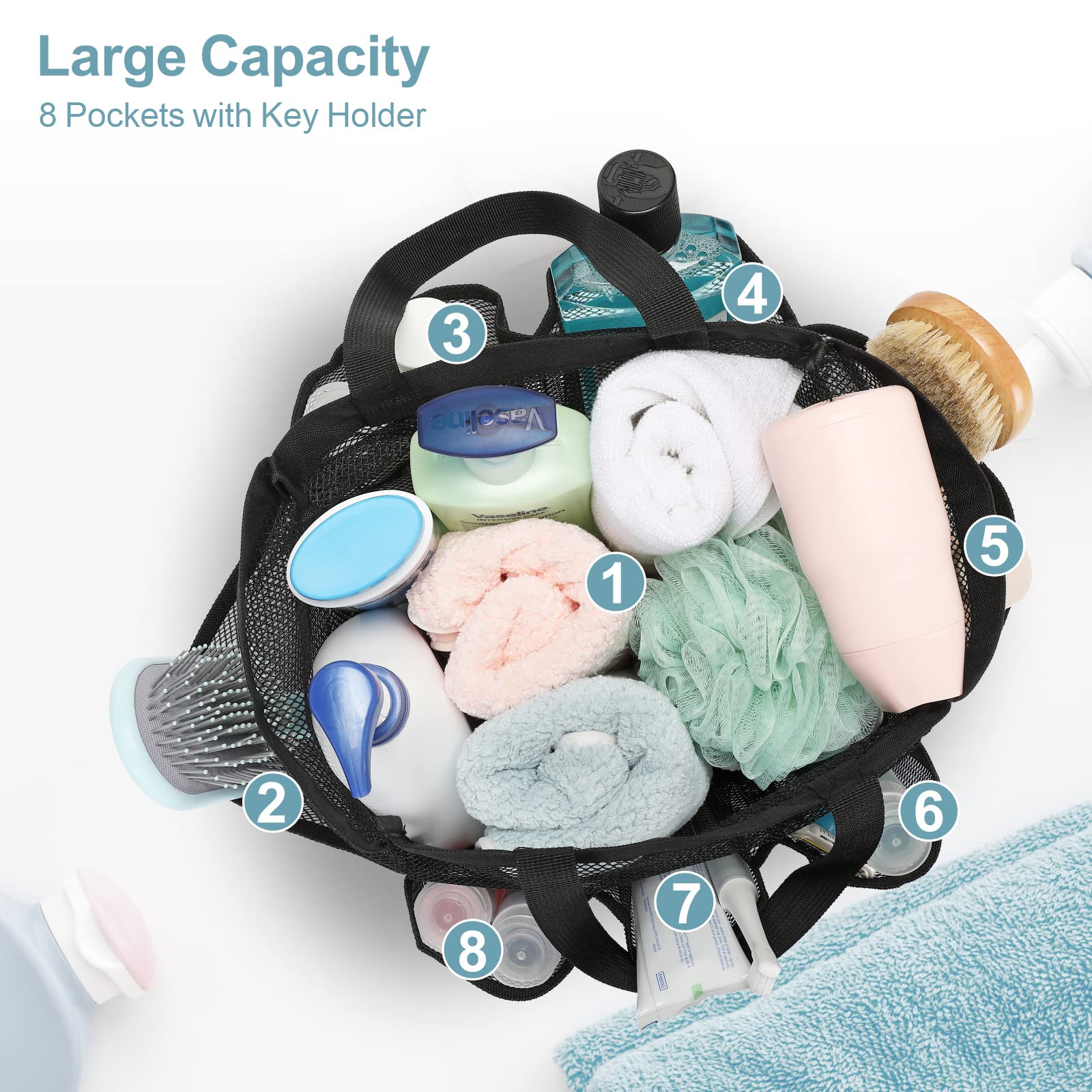 - Original Shower Caddies – Mesh Shower Caddy Portable, Shower Caddy Quick Dry Hanging Shower Bag for College Dorm Essentials, 8 Pockets Deeper Bath Shower Caddy Basket for Bathroom Camp Gym Swim Travel Outdoor, Black by GSlife