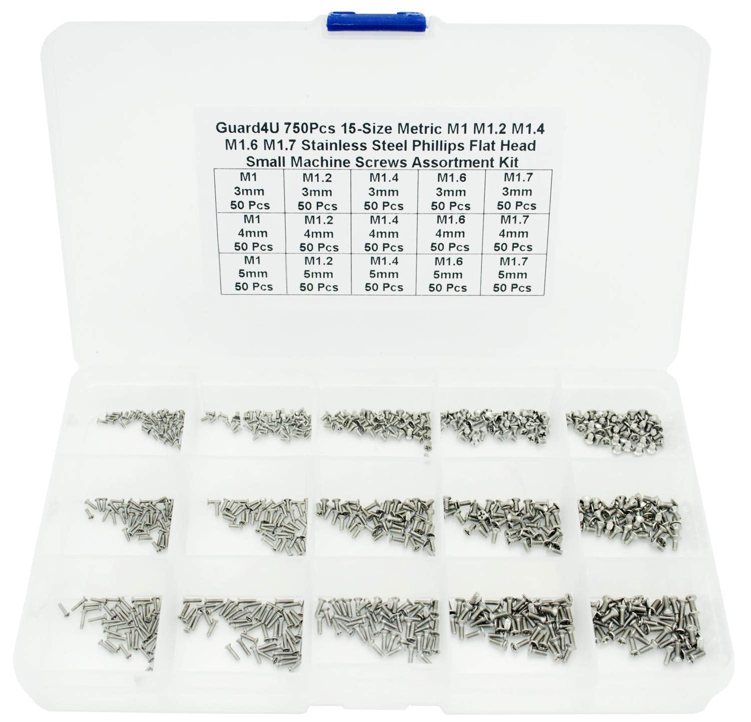 - Original Machine Screws – 750Pcs 15-Size Metric M1 M1.2 M1.4 M1.6 M1.7 Stainless Steel Phillips Countersunk/Flat Head Small Machine Screws Assortment Kit by Guard4U