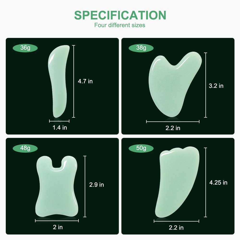 - Original Massage Stones – Guasha Massage Tool,Natural Jade Gua Sha Board, 4PCS Guasha Stone Scraping Massage Sets for SPA Acupuncture Physical Therapy Muscle Knots Facial Caring Point Treatment Tissue Lymphatic Drainage by The Global Genie