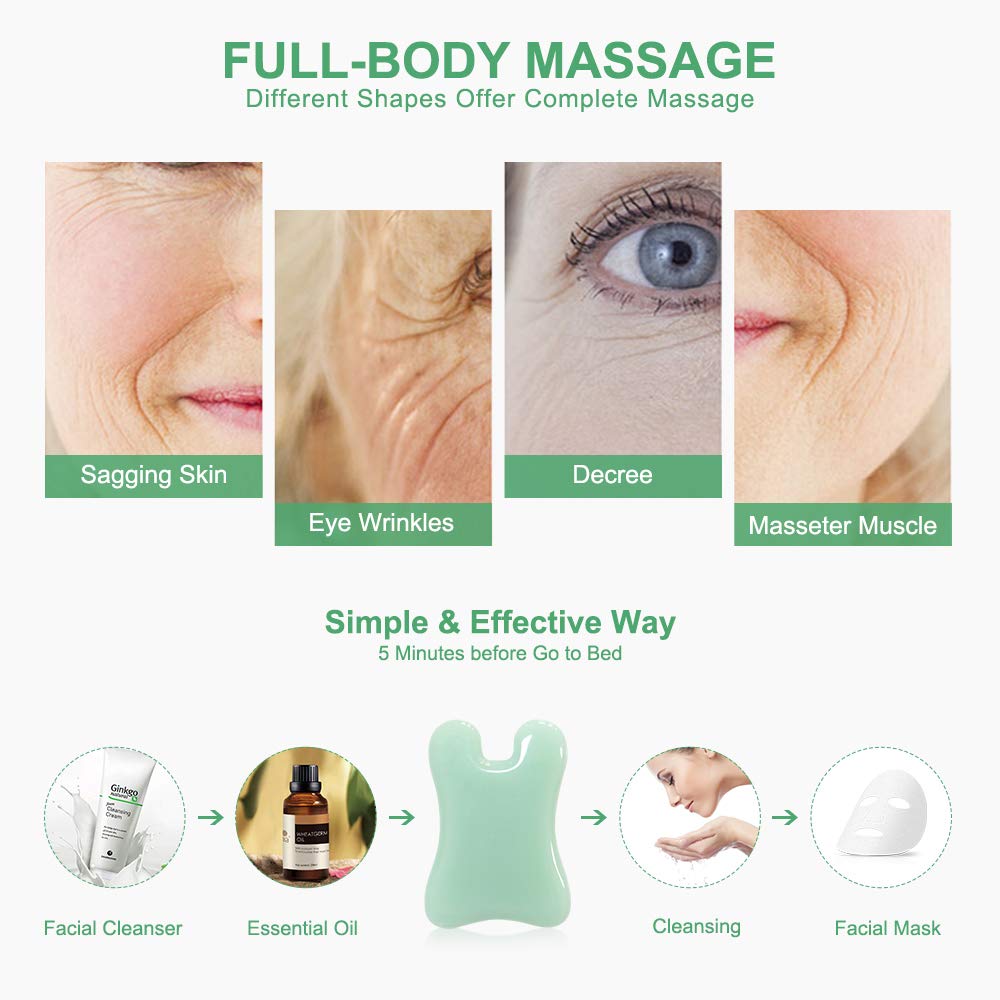 - PREMIUM NATURAL JADE -The jade comes from the nature stone ,which is manually carved and polished into the desired shape. It contains a variety of mineral elements that are beneficial to human body and skin, Weight: Appro 50g. Thickness:5mm. It is easy to clean - using warm water, hand soap or body wash is sufficient.If use some coconut jojoba massage oil , it really makes your skin feel smooth and moisturized and achieve better effects