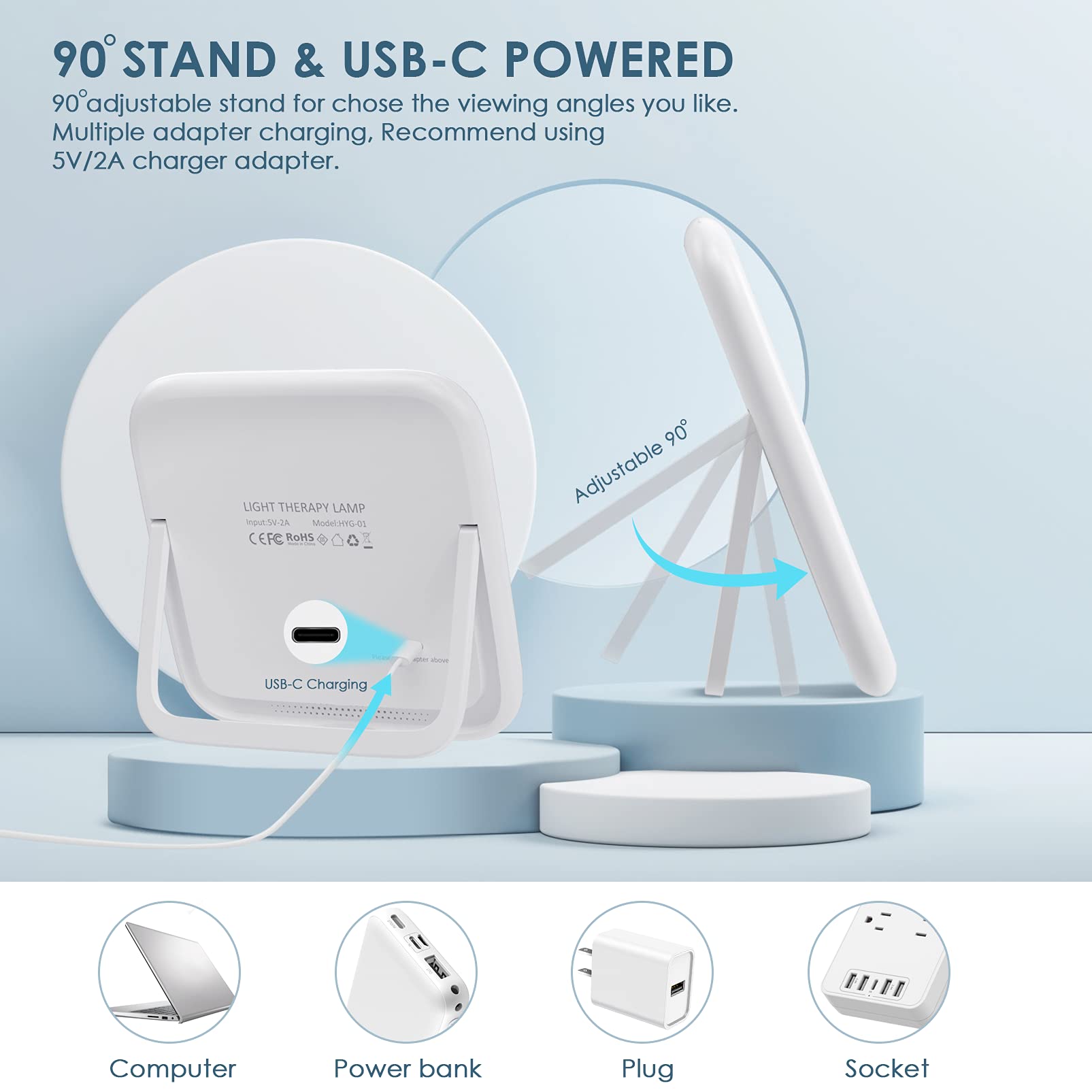 - 90 Rotation Standing Desk Lamp This light therapy desk lamp comes with a 90 degree rotation standing bracket, adjust the opening angle to position the light as best needed. Portable to place next to laptop, on the kitchen counter or cubicle desk, matching any types of decoration.