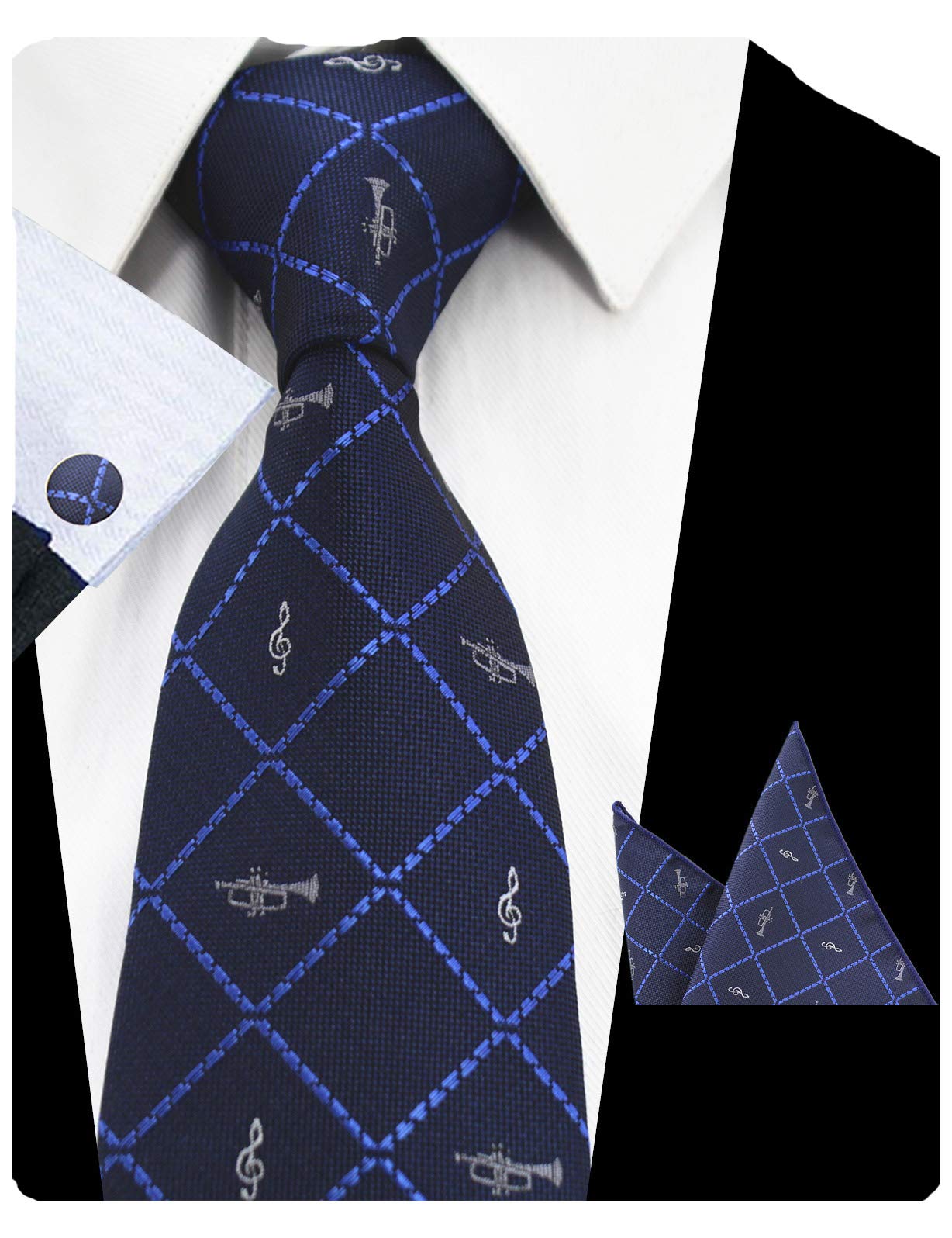 - Original Tie Sets – Fashion Men Tie Set Music Plaid Necktie with Handkerchief and Cufflinks (0726-42) by GUSLESON
