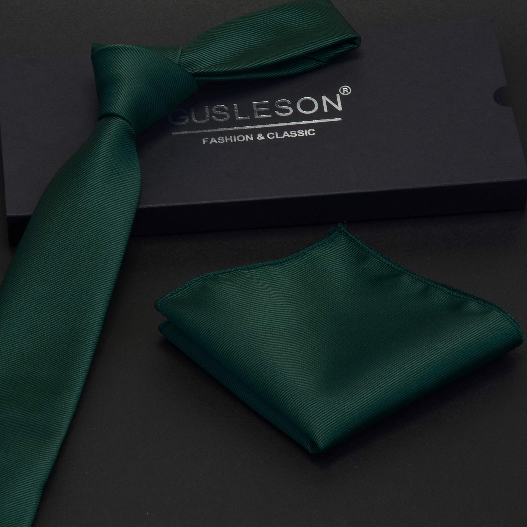 - Original Tie Sets – Solid Dark Green Emerald Skinny Tie For Men Classic Slim Necktie and Pocket Square Set (0754-08) by GUSLESON