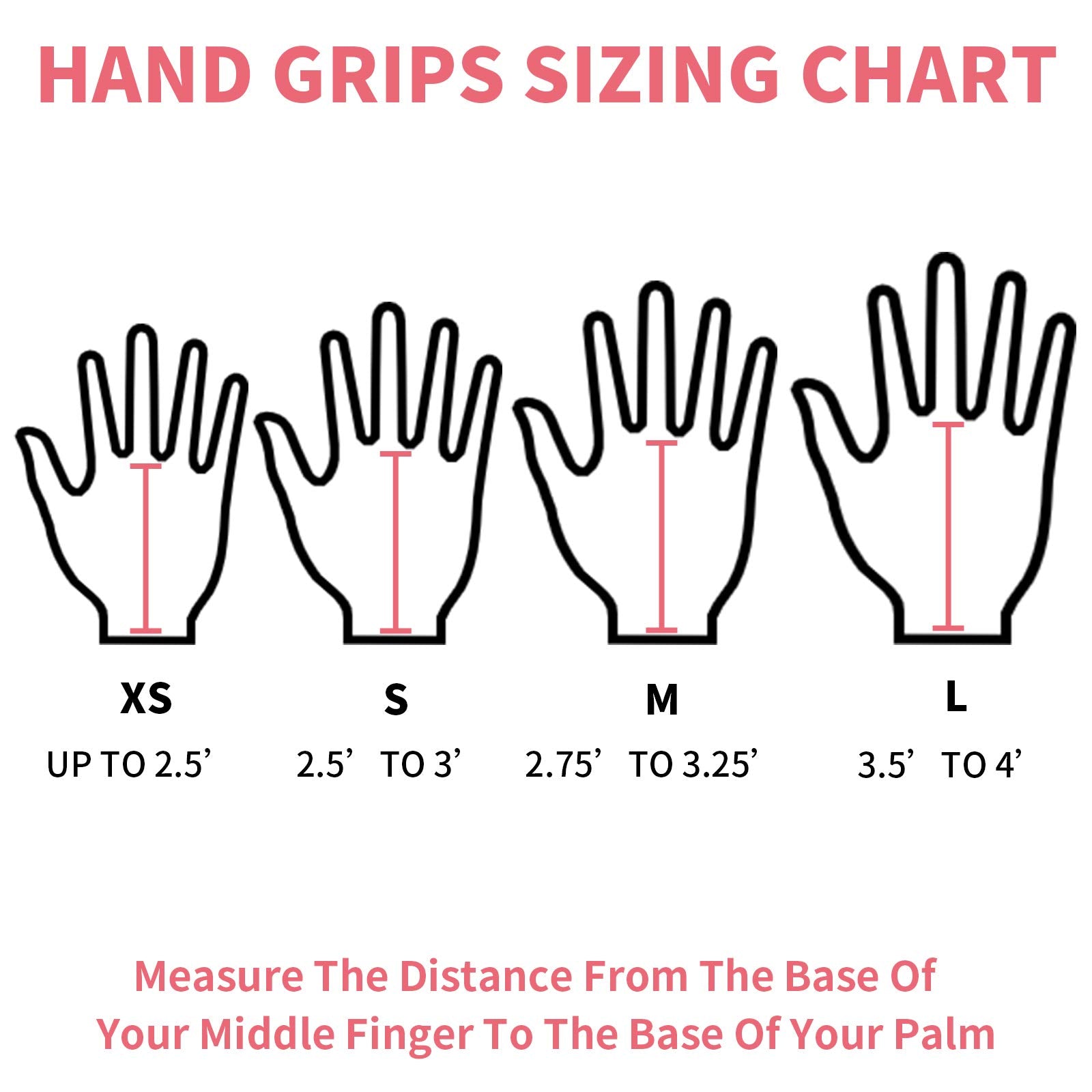- Grips Size: XS - up to 2.5’, S - 2.5’ to 3’, M - 2.75’ to 3.25’, L - 3.5’ to 4’.