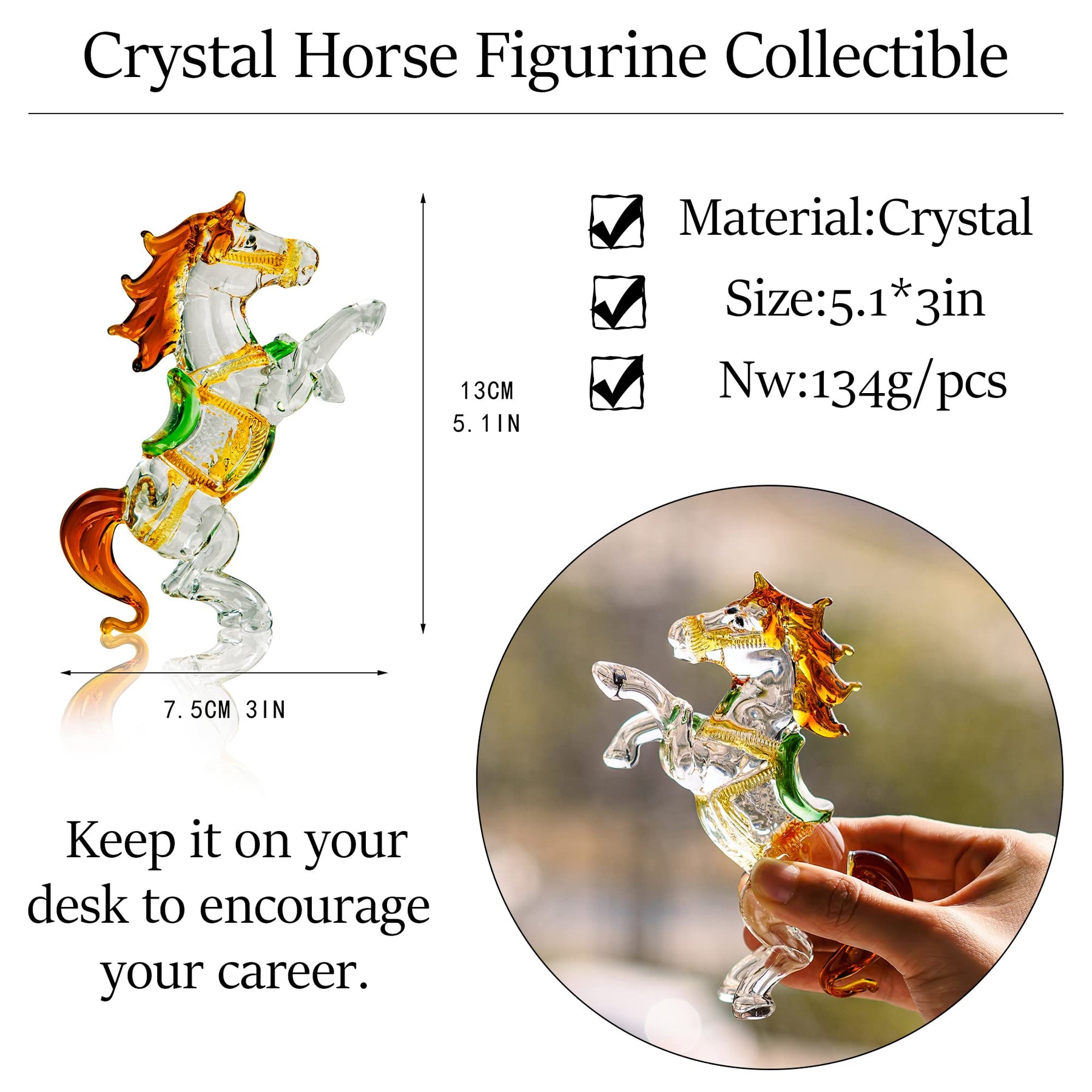 - Crystal Horse Statue: The standing horse symbolizes enthusiasm and vitality, and its persevering quality is worthy of our admiration. Put it in your study room and office and always motivate yourself. Handmade crafted with vivid statue lines, show the power to the fullest. Material: K9 crystal. Size: 5.1*3 inches