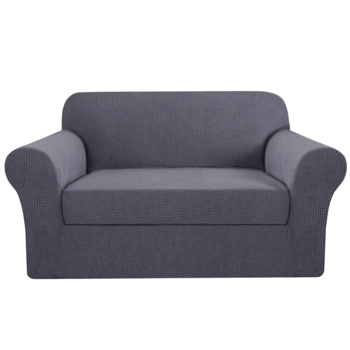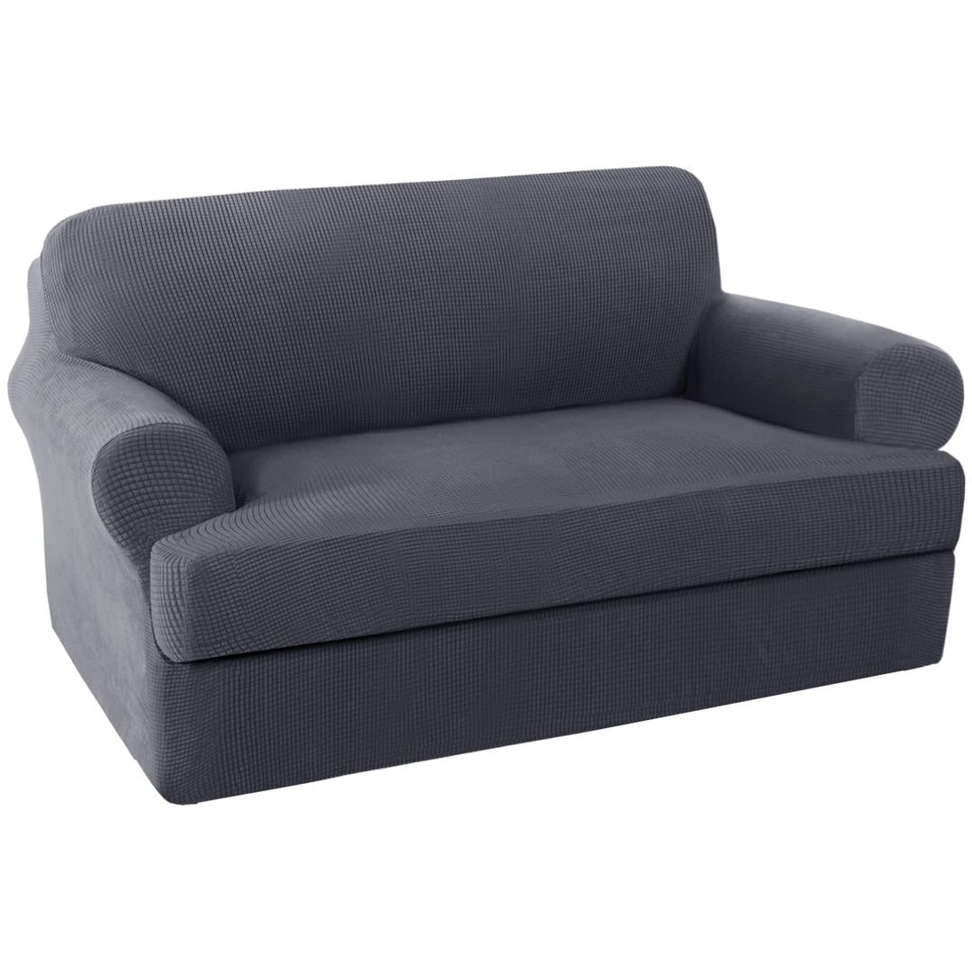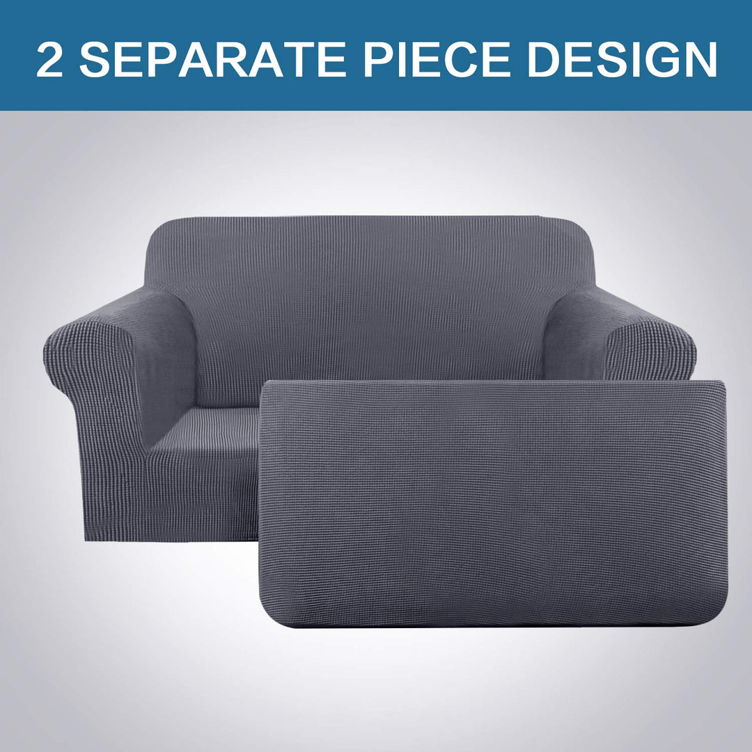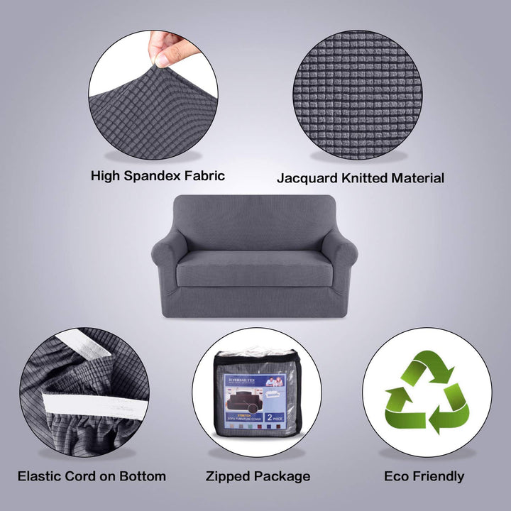 - Original Sofa Slipcovers – High Stretch 2-Piece Loveseat Furniture Cover Loveseat Covers for 2 Cushion Couch, Suit for T Cushion/Box Cushion Rich Jacquard Spandex Fabric Non Slip Stay in Place (Loveseat, Grey) by H.VERSAILTEX