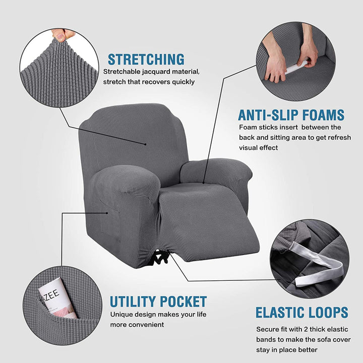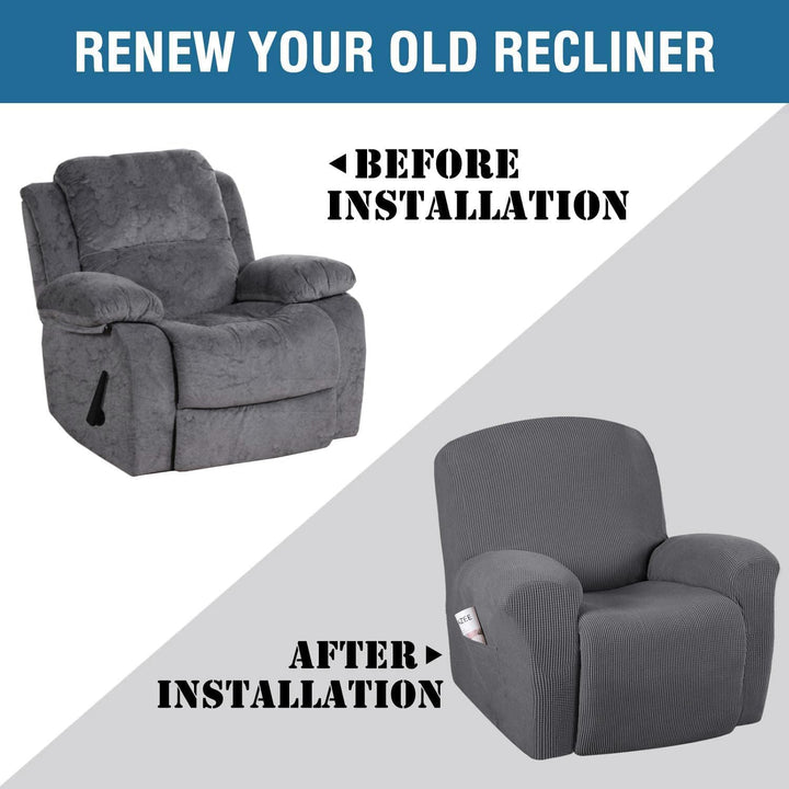 - Original Recliner Slipcovers – Super Stretch Recliner Couch Covers Chair Cover Form Fitted Non Slip Reclining Slipcovers for Standard Large Recliner, Soft Thick (1 Pack, Grey) by H.VERSAILTEX