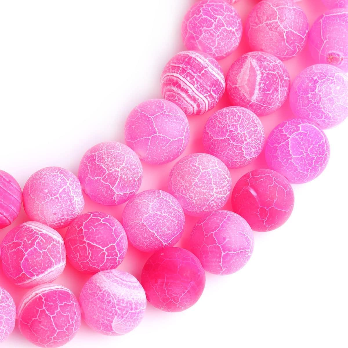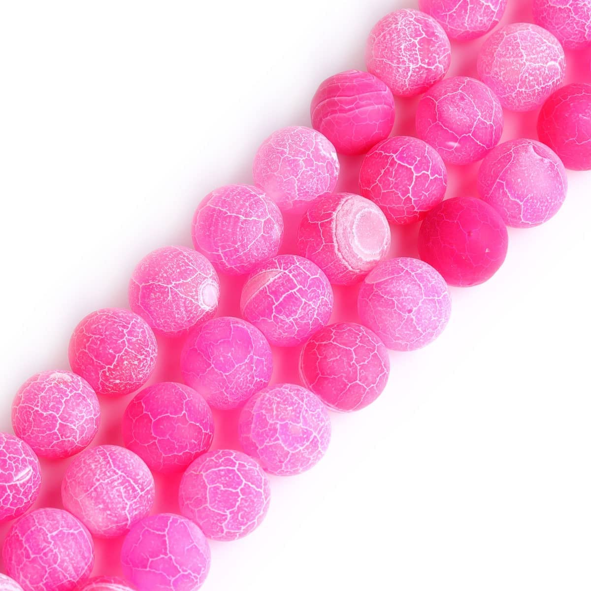 - Original Beads & Bead Assortments – 45pcs 8mm Fuchsia Frosted Agate Beads Unpolished Cracked Matte Round Loose Gemstone Beads for Jewelry Making DIY Bracelet Necklace by HAAMIIQII