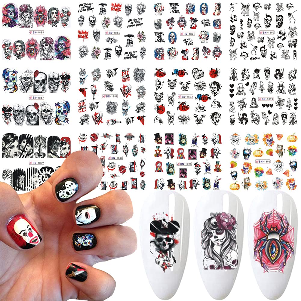 - Original Stickers & Decals – Halloween Nail Stickers Day of The Dead Nail Art Water Decals Transfer Foils for Nails Supply Watermark Skull Nail Art Decals Nail Tattoo for Halloween Party Nail Supplies Manicure Decorations 12PCS by YKZFUI