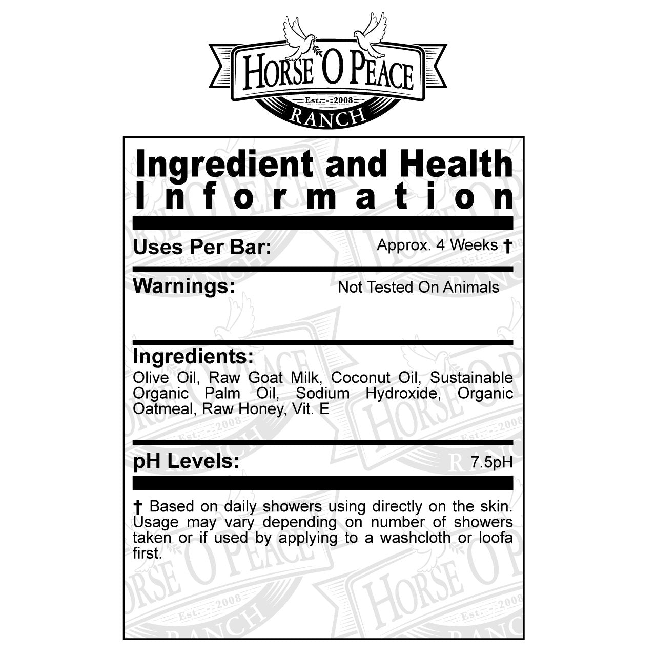 Olive Oil, Raw Goat Milk, Coconut Oil, Sustainable Organic Palm Oil, Sodium Hydroxide, Organic Oatmeal, Raw Honey, Vit. E