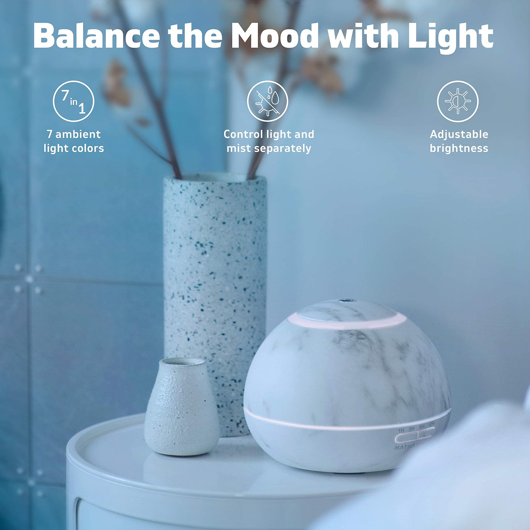 - Original Diffusers – Marble Essential Oil Diffuser, Aroma Diffuser, 350ml Aromatherapy Diffuser, Diffusers for Home, Ultrasonic Cool Mist Room Humidifier, 24+ Hour Capacity, 7-Color Mood Light, BPA-Free (White) by HATHASPACE