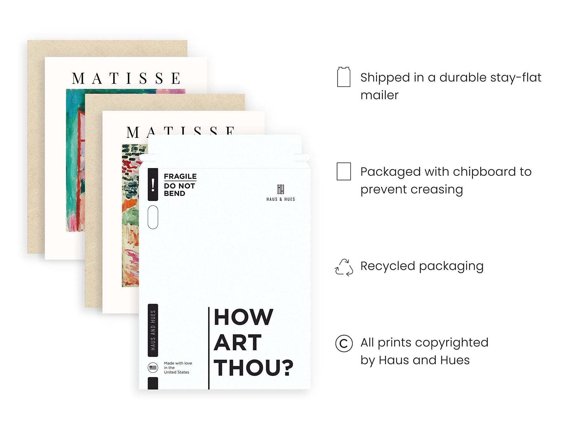 - IMPRESSIONIST ART POSTERS: Henri Matisse once said that he sought to create art that would be a soothing calming influence of the mind, rather like a good armchair. Hence, Haus and Haus curated six breathtaking Matisse prints, which allow you to experience zen and beauty wherever you display them. They can be placed together as they complement each other beautifully or can be separated to add a summer or spring vibe to multiple areas around your home, office, and studio