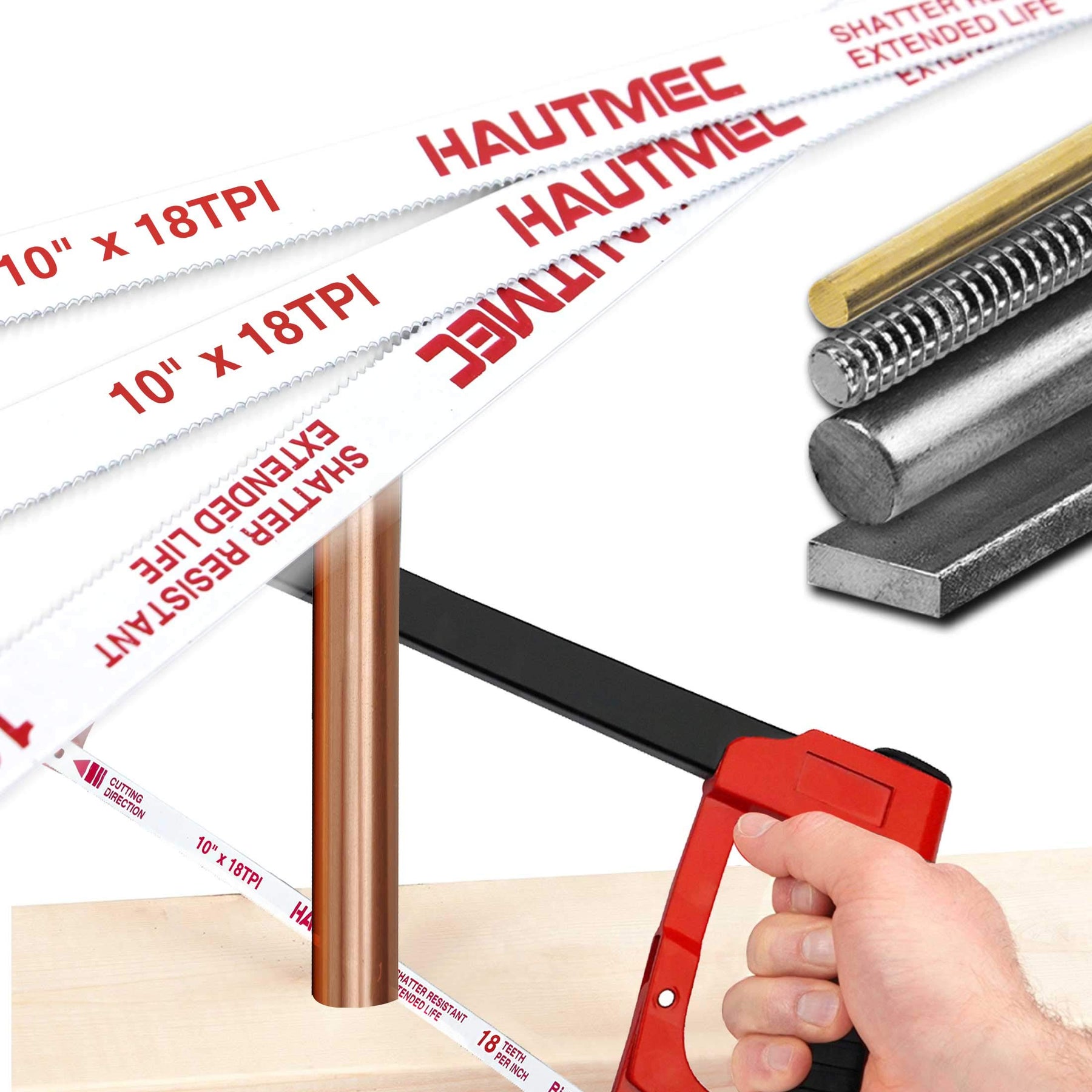- Original Hacksaw Blades – 10 Hacksaw Blades Replacement Bi-Metal(10 Pack) 18 TPI High Speed Steel Grounded Teeth HT0119-CT by HAUTMEC