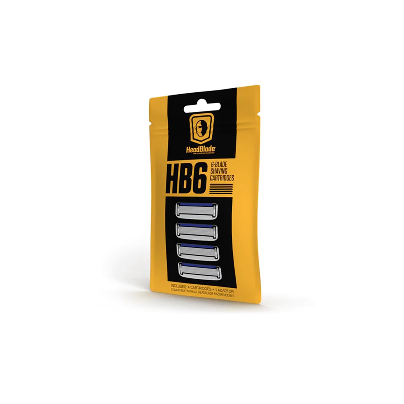 - The HB6 six-bladed cartridge (4 blades total) comes standard on the HeadBlade MOTO and ATX models and delivers amazing performance due to its flow-through design and seamless blade construction. (razor not included)