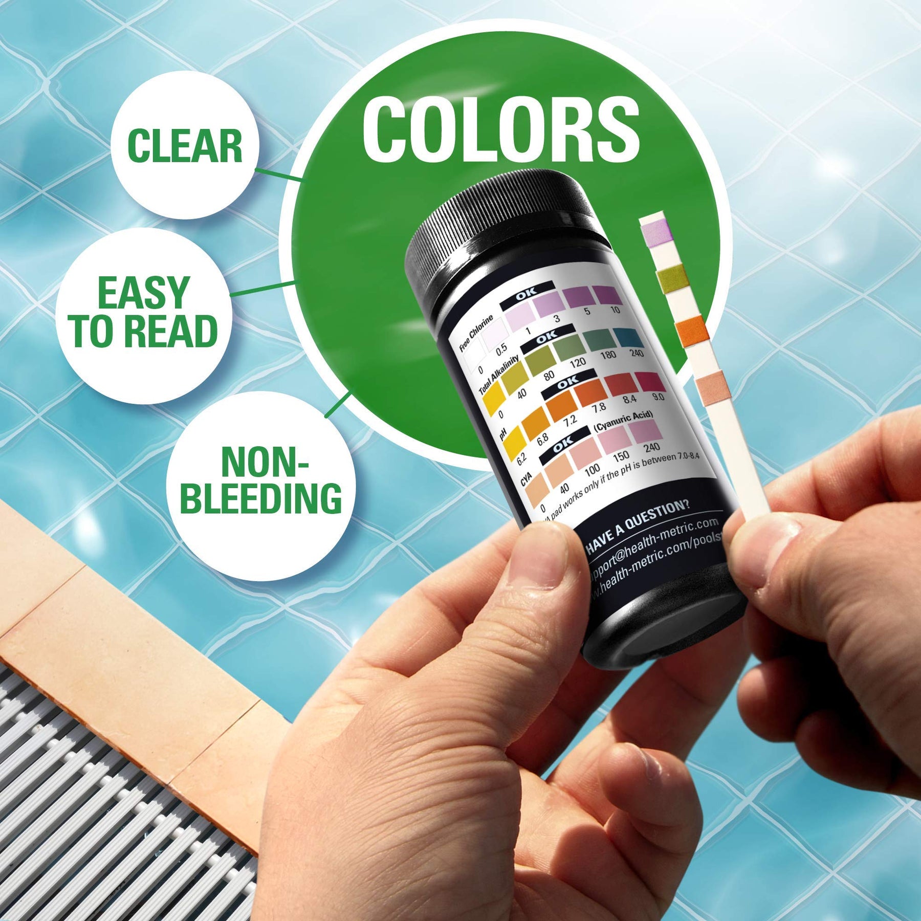 - Original Test Strips – 4-Way Pool and Spa Test Strips, 50 ct, Swimming Pool Testing Strip Kit for Chlorine Alkalinity pH & Cyanuric Acid, Easy to Use Chemical Tester, Fast & Accurate Water Maintenance by Health Metric