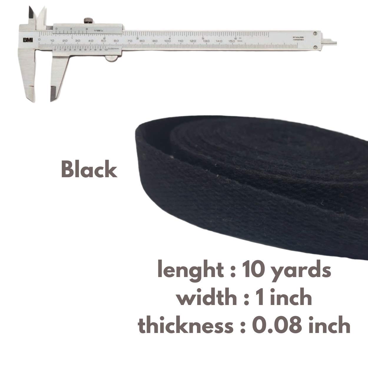- Lenght / Width / Color | 1 Inch wide cotton webbing straps, 10 Yards and 0.08 inches thickness, Black Color