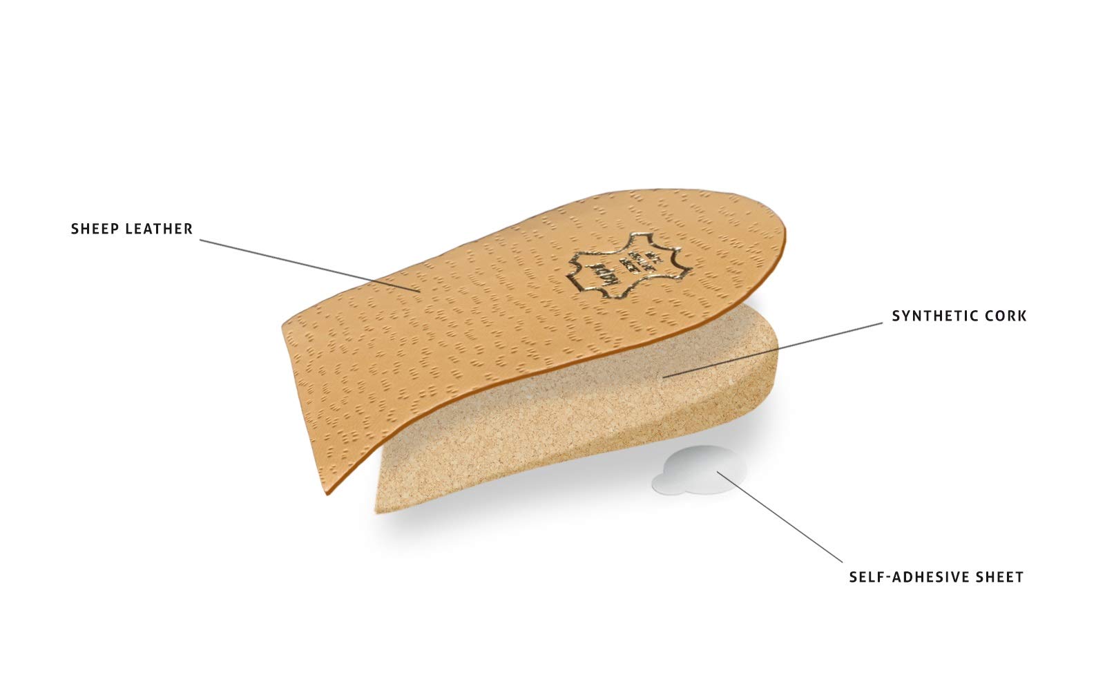- TOP QUALITY MATERIALS: Covered with natural vegetable-tanned leather to absorb sweat. The wedge itself is made of Korfant – which is durable orthotic material that imitates cork. The bottom layer has adhesive to prevent the wedge from sliding inside your shoes