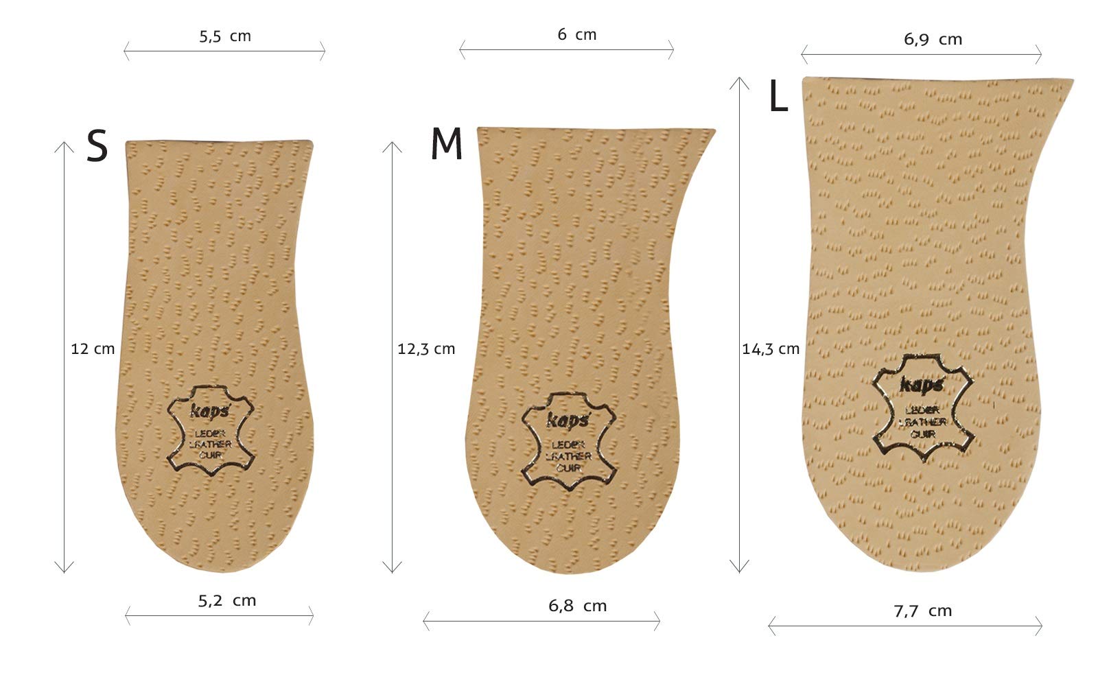 - VARIOUS SIZES: Kaps Topmed comes in different heights – from 5mm to 30mm – and different widths S / M / L. See product picture for a complete sizing diagram. 1 pack contains 1 pair (left and right foot shaped pad)