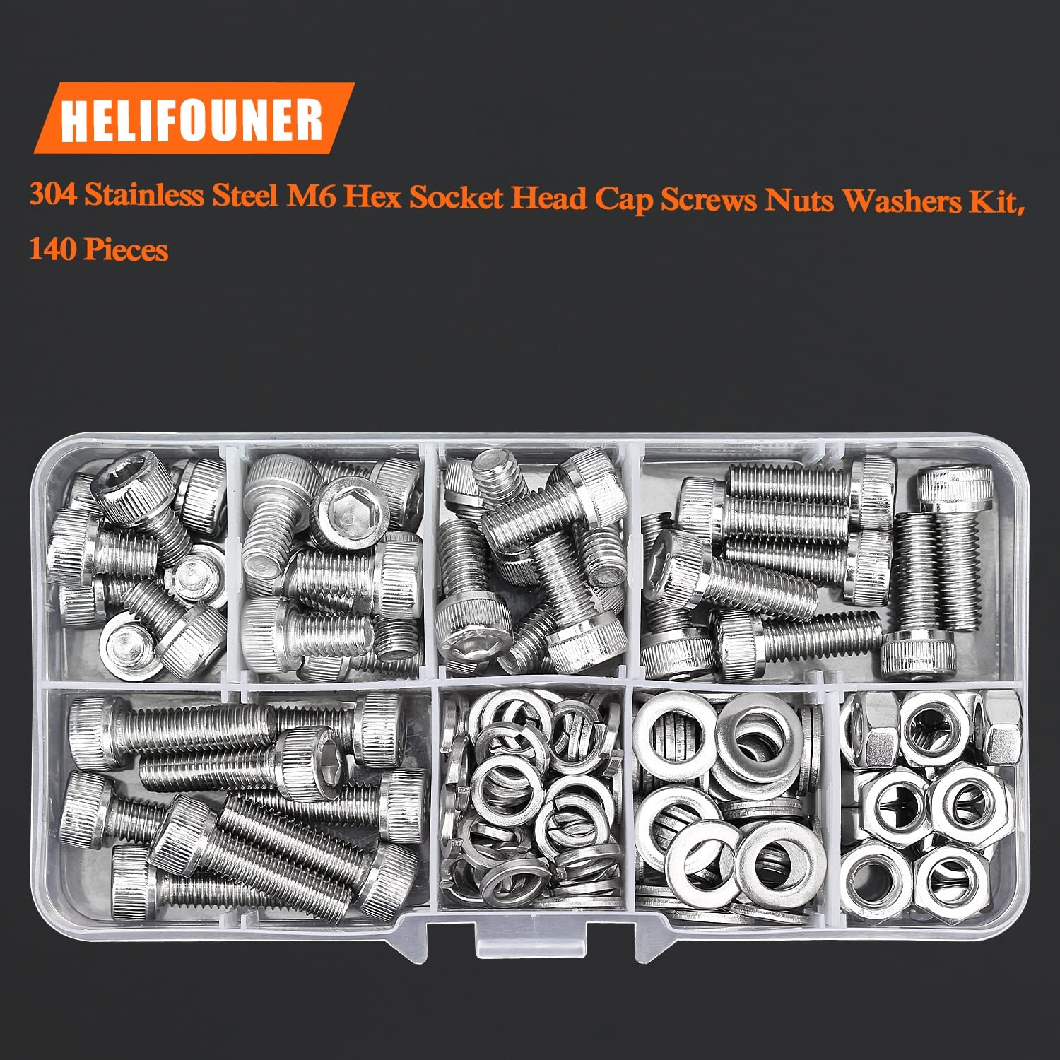 - Original Socket Head Screws – 140 Pieces M6 x 8mm /10mm /12mm /16mm /20mm, Hex Socket Head Cap Metric Screws Bolts Washers Nuts Kit, 304 Stainless Steel by HELIFOUNER