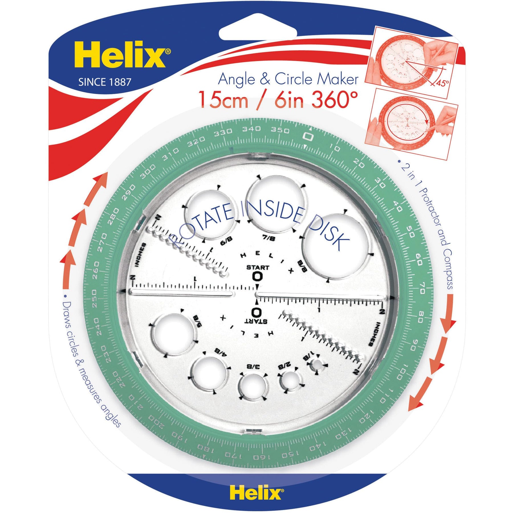 Discover the authentic Angle and Circle Maker with Integrated Circle Templates, 360 Degree, 6 Inch / 15cm, Assorted Colors (36002) by Helix, part of our Protractors collection. Imported directly from the USA and sourced from trusted suppliers, this product is 100% authentic and delivered anywhere in India at the best price.