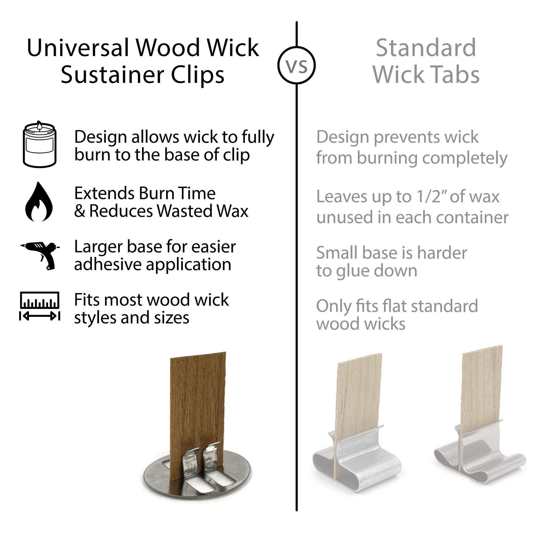 - Original Wicks – Universal Wood Wick Clips for Candles, Sustainer Tabs Fit Most Wooden Wicks, Longer Burn Time & Less Wasted Wax (300 Pack) by Hemlock Park