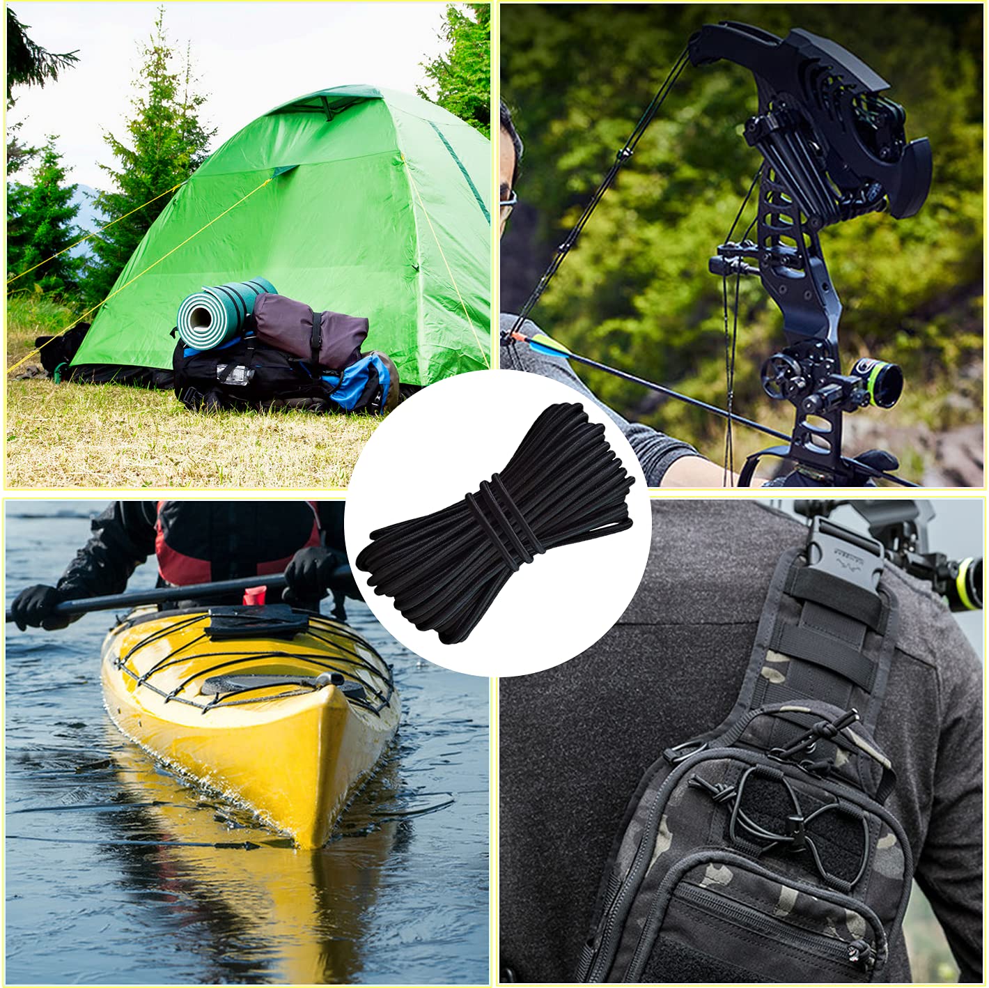 Be reassured using our elastic cord to your creative projects, they are suitable for hanging objects, holding items, wrap packages, support plants, hammock, bungee cords, bungee straps, support transport, absorb shock, tent repair, towing winch, hook straps, traveling, camping, kayaking, biking, boating, hunting, daily usage, home decoration, etc.