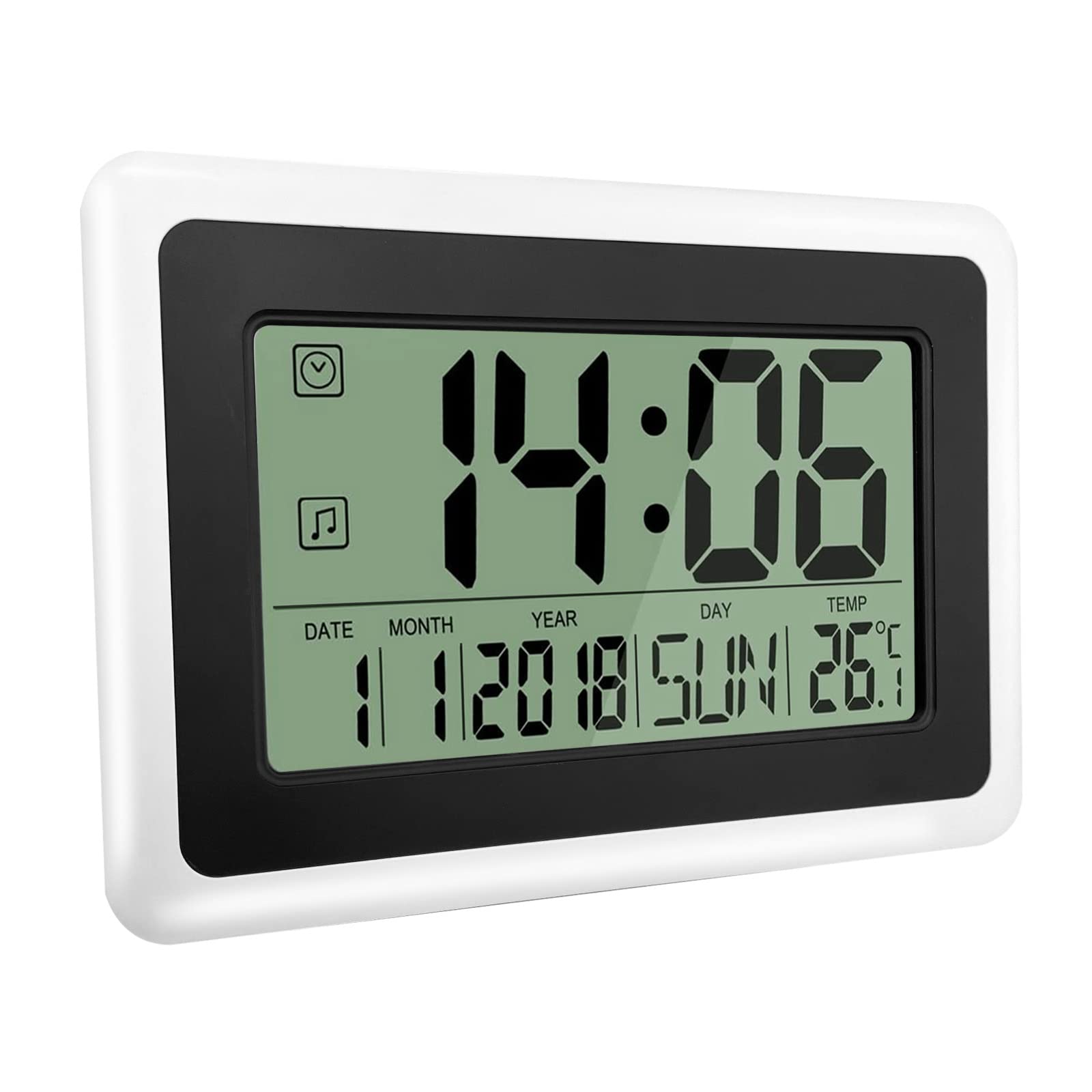 HeQiao Digital Wall Clock with Calendar & Temperature, Large LCD Screen Alarm Clock with Extra Large Digits, Easy to Read and Set, Perfect for Seniors